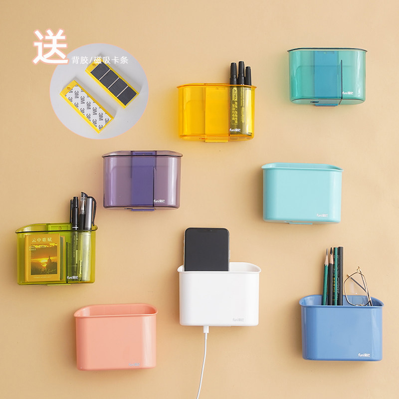 富尼可挂可吸式大容量磁性笔筒背胶贴墙壁挂笔盒多功能收纳盒黑白板磁铁学生收纳笔盒强磁力磁吸粉笔袋工具盒
