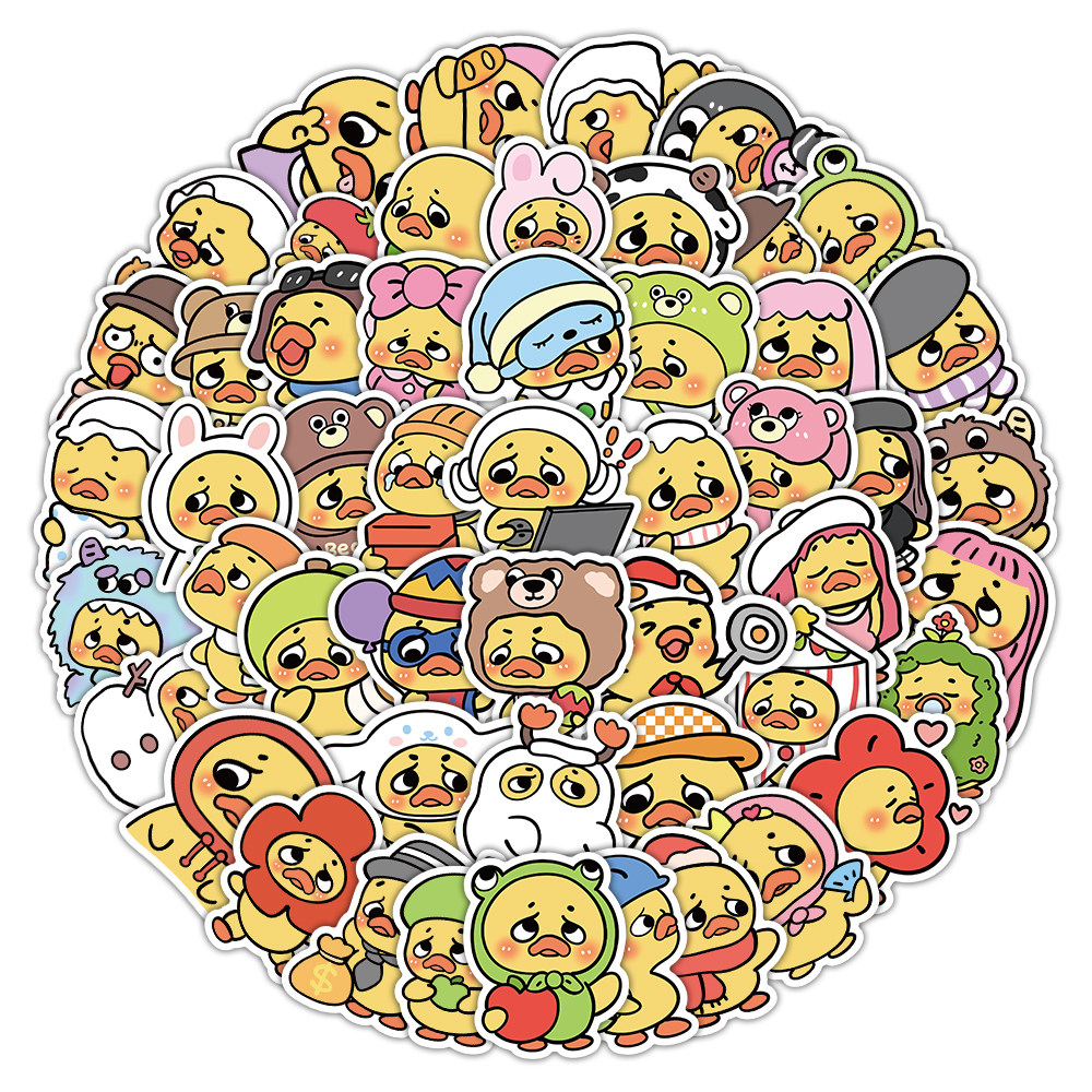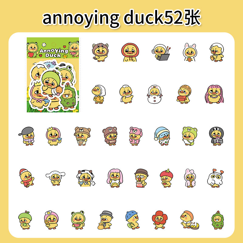 104张Q版annoying duck贴纸可爱卡通小黄鸭装饰水杯手账防水贴画