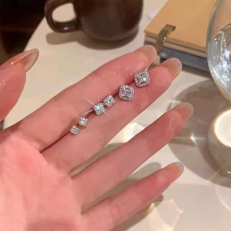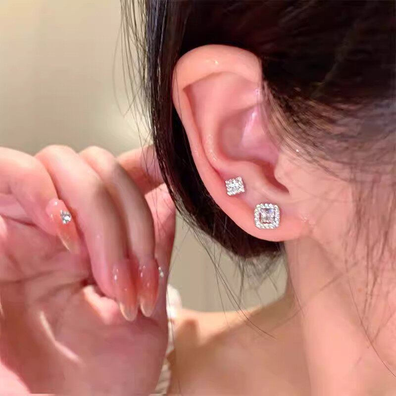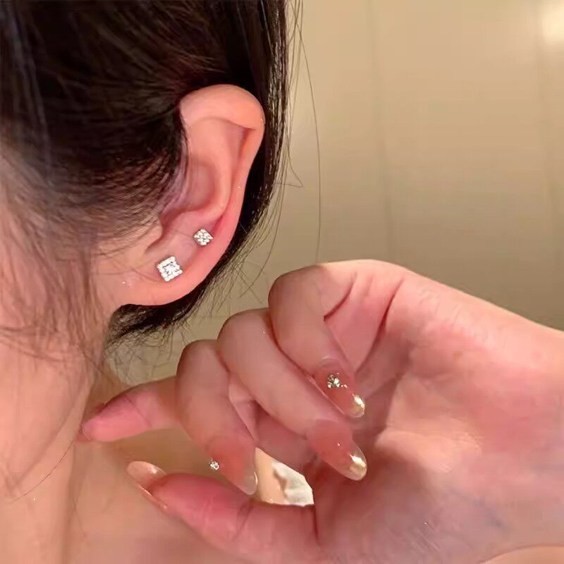 镀925银耳钉耳环方糖养耳洞女轻奢高级感耳饰女睡觉免摘几何方形