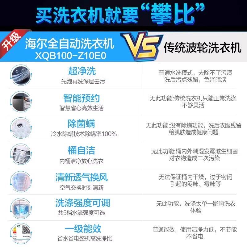 海尔洗衣机全自动家用波轮10公斤官方正品除菌除螨洗XQB100-Z10E0