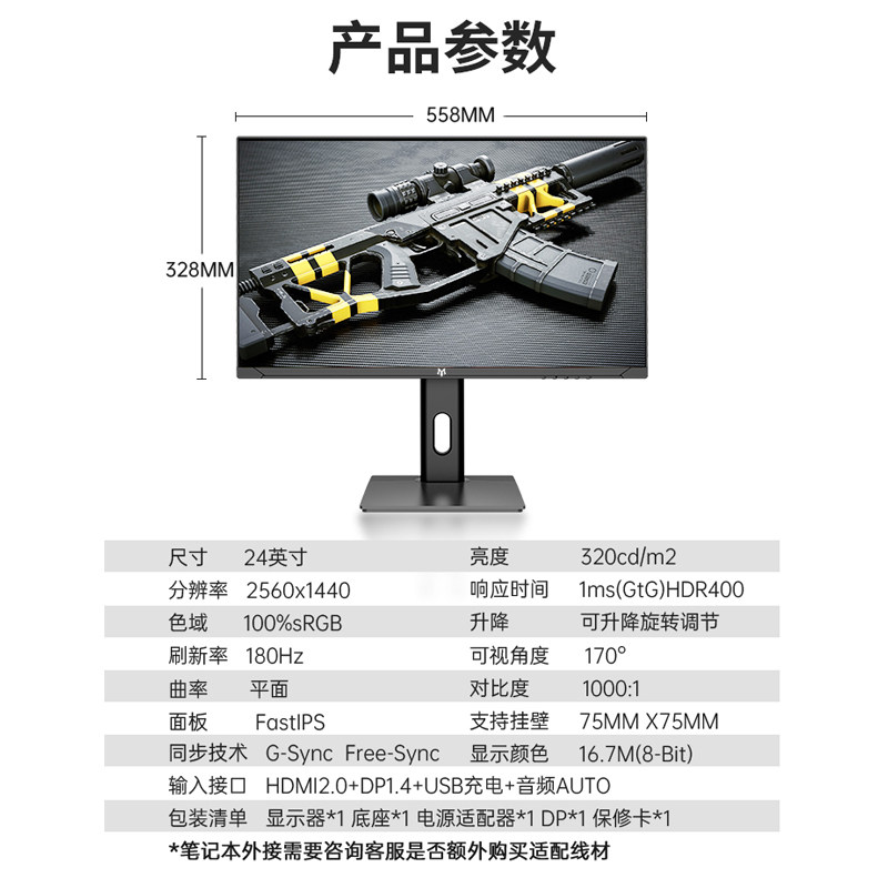 24英寸2k180hz电脑液晶显示器高清FastIPS游戏电竞显示屏CSGO高刷