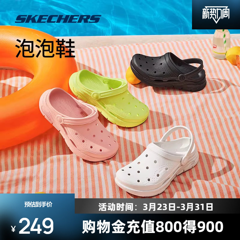 斯凯奇洞洞鞋运动凉鞋女鞋多巴胺拖鞋厚底增高轻便海边沙滩泡泡鞋