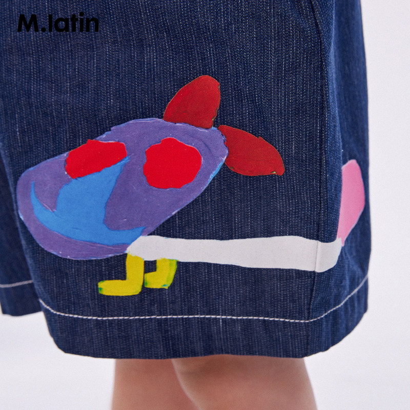 马拉丁童装儿童裤子夏新款男女童小童趣味立体耳朵印花背带裤