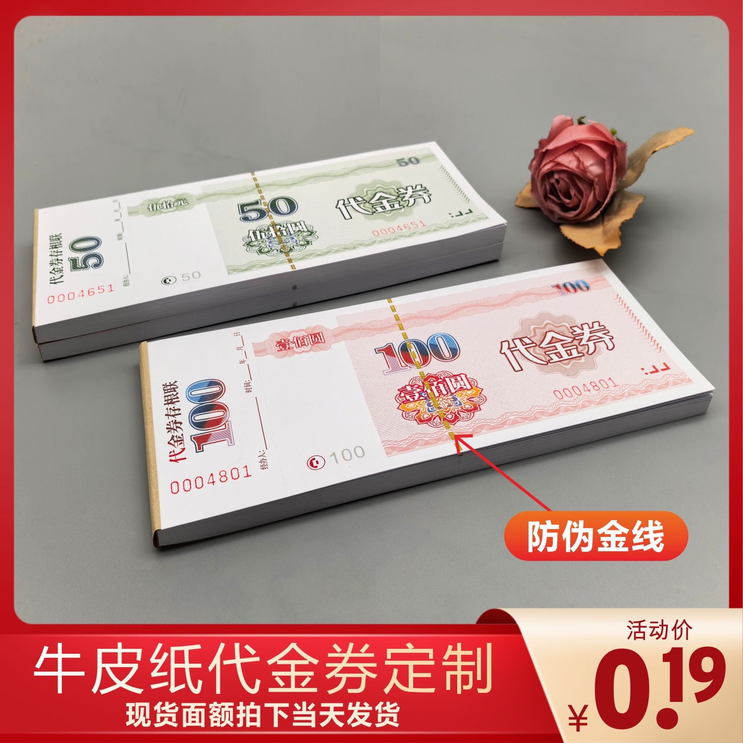 防伪代金券定制优惠券印刷积分券个性订做名片彩色印刷体验现金券