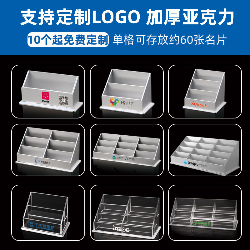 亚克力透明名片座高档酒店前台大容量透明亚克力商务卡片名片收纳盒创意桌面多格名片盒个性名片夹可定制logo