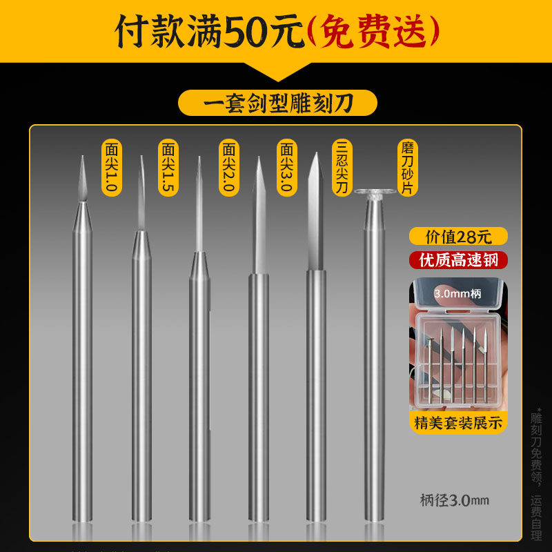 电动雕刻工具套装牙机刻刀头白钢钻头磨头核雕木雕木工划线宝剑刀