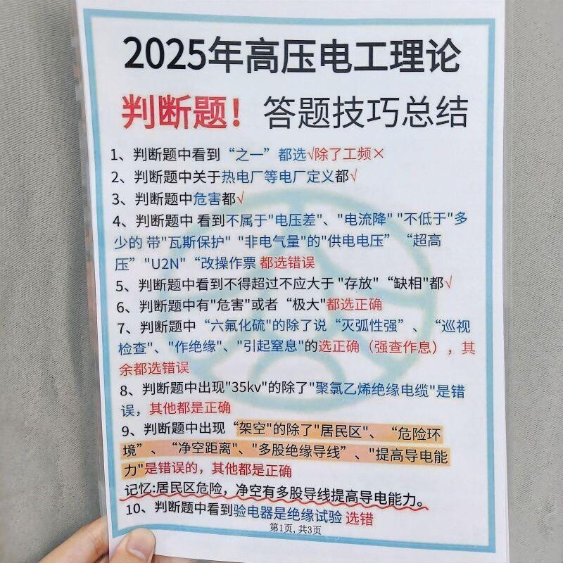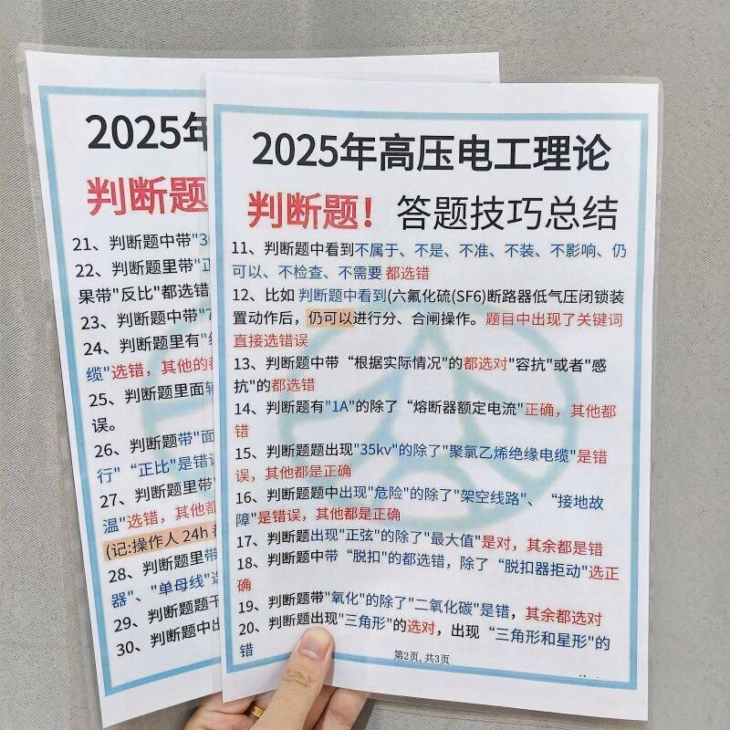 2025年高压电工理论答题技巧总结深度解析电力高压技术挂图认知卡