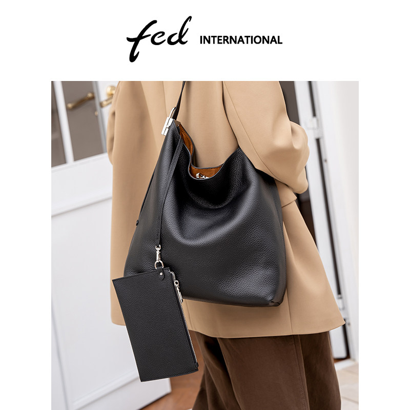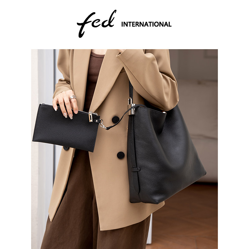 fed头层牛皮托特包大容量单肩手提斜挎包妈咪包包女包真皮BFA9129