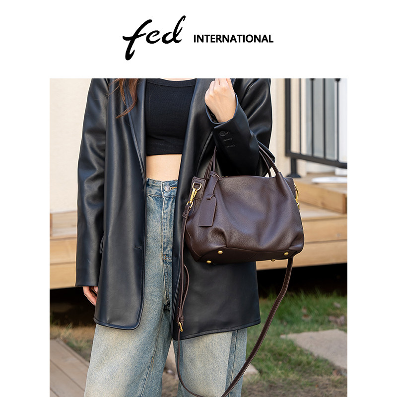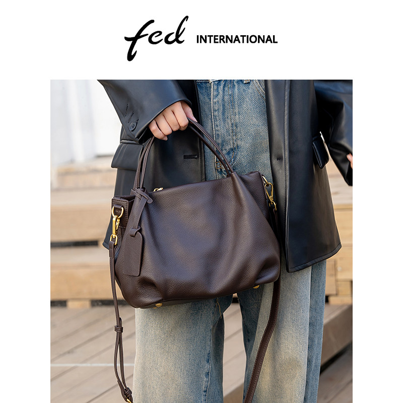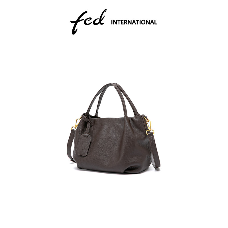 fed褶皱包头层牛皮托特包大容量单肩手提包妈咪包包女真皮BFA9447