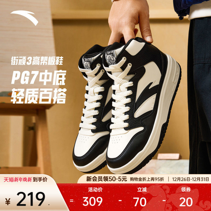 安踏PG7 街顽3丨熊猫色高帮板鞋男2025冬季新款黑白滑板鞋运动鞋