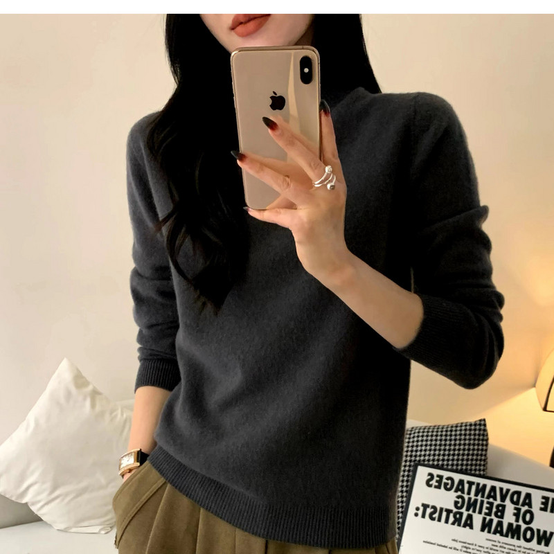 新款针织羊绒衫女半高领打底衫秋冬新款内搭修身显瘦黑色毛衣高级