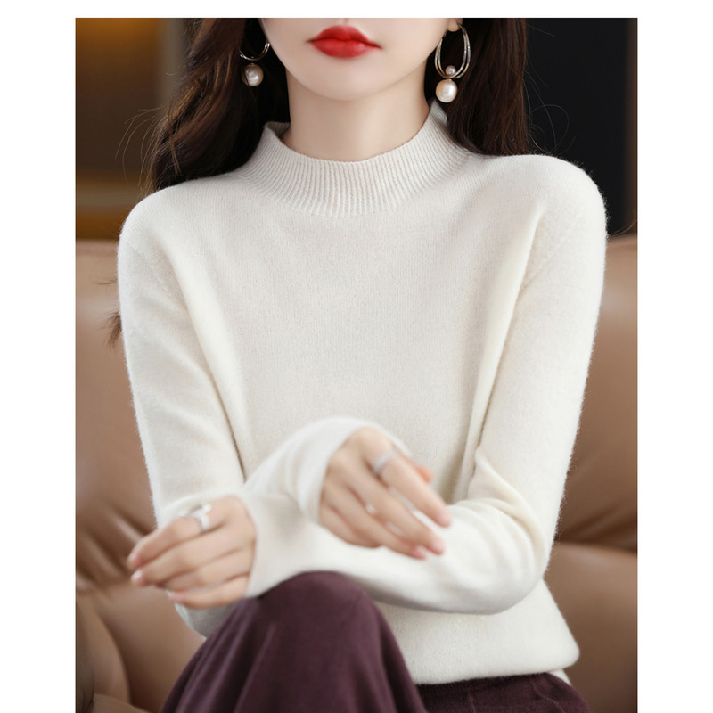 秋冬100%软糯毛衫女半高领白色内搭针织打底衫修身气质中领毛衣