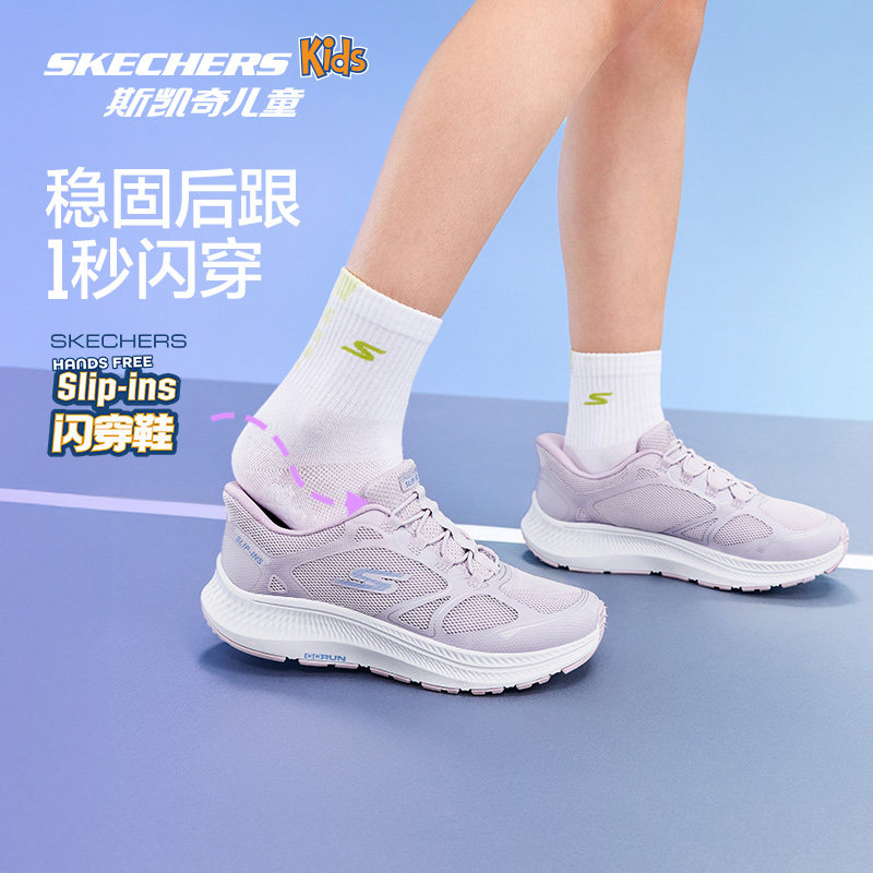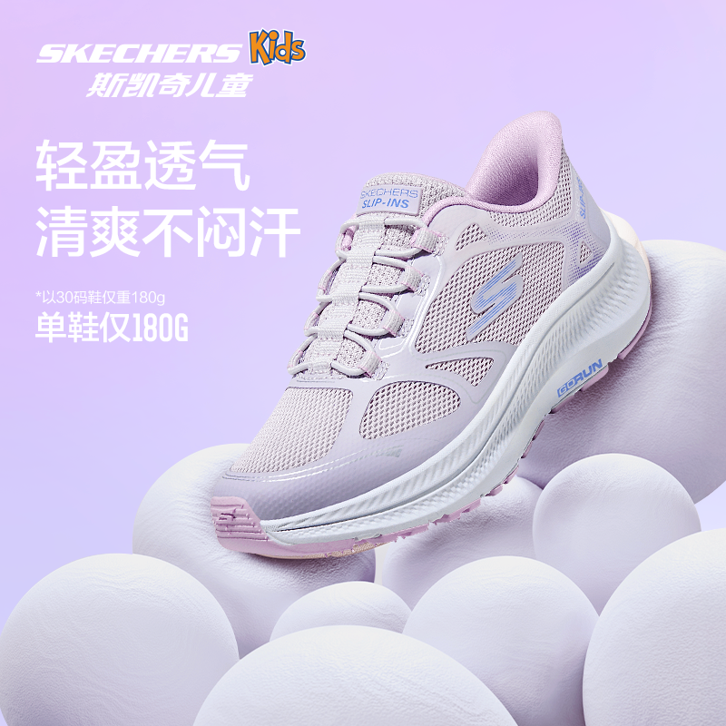 Skechers斯凯奇儿童云跃闪穿鞋女童专业减震跑步鞋秋季大童运动鞋