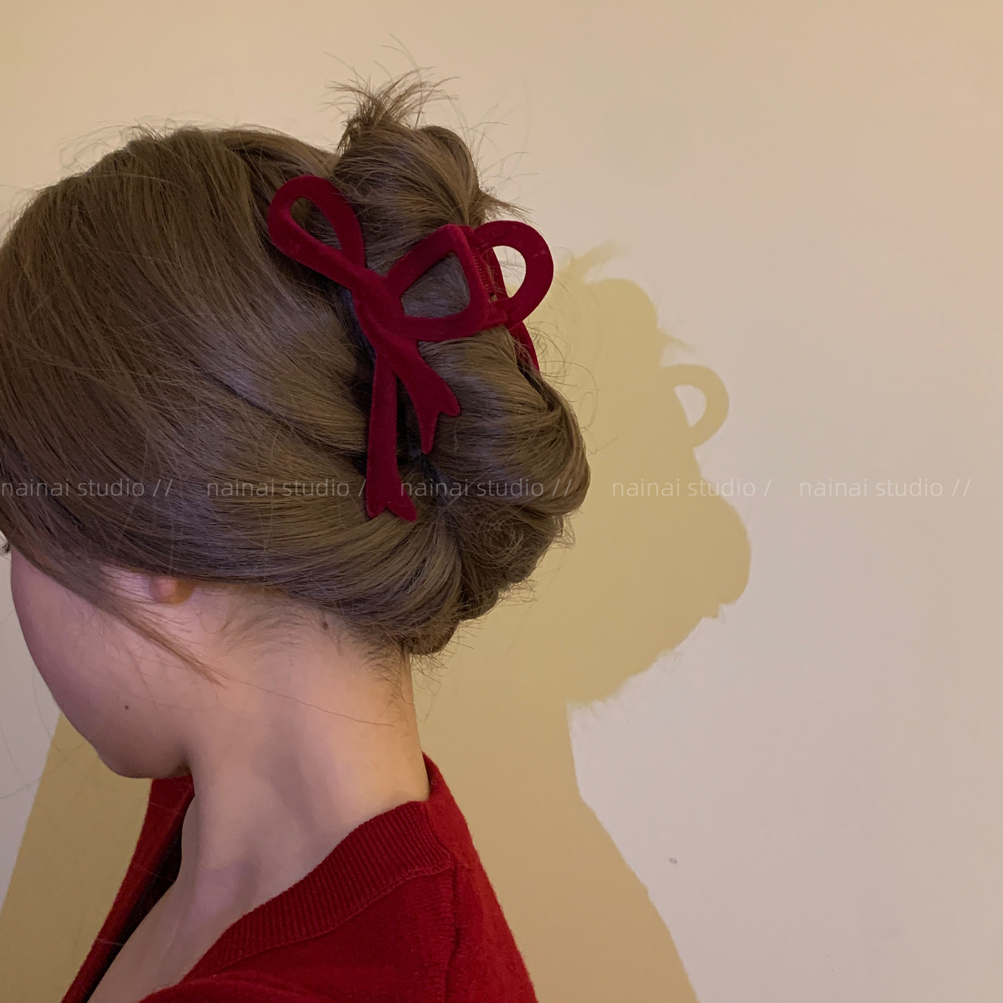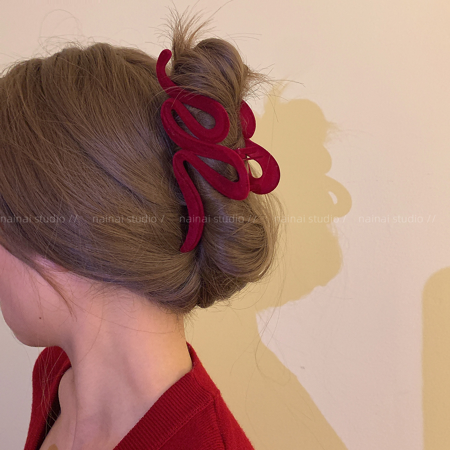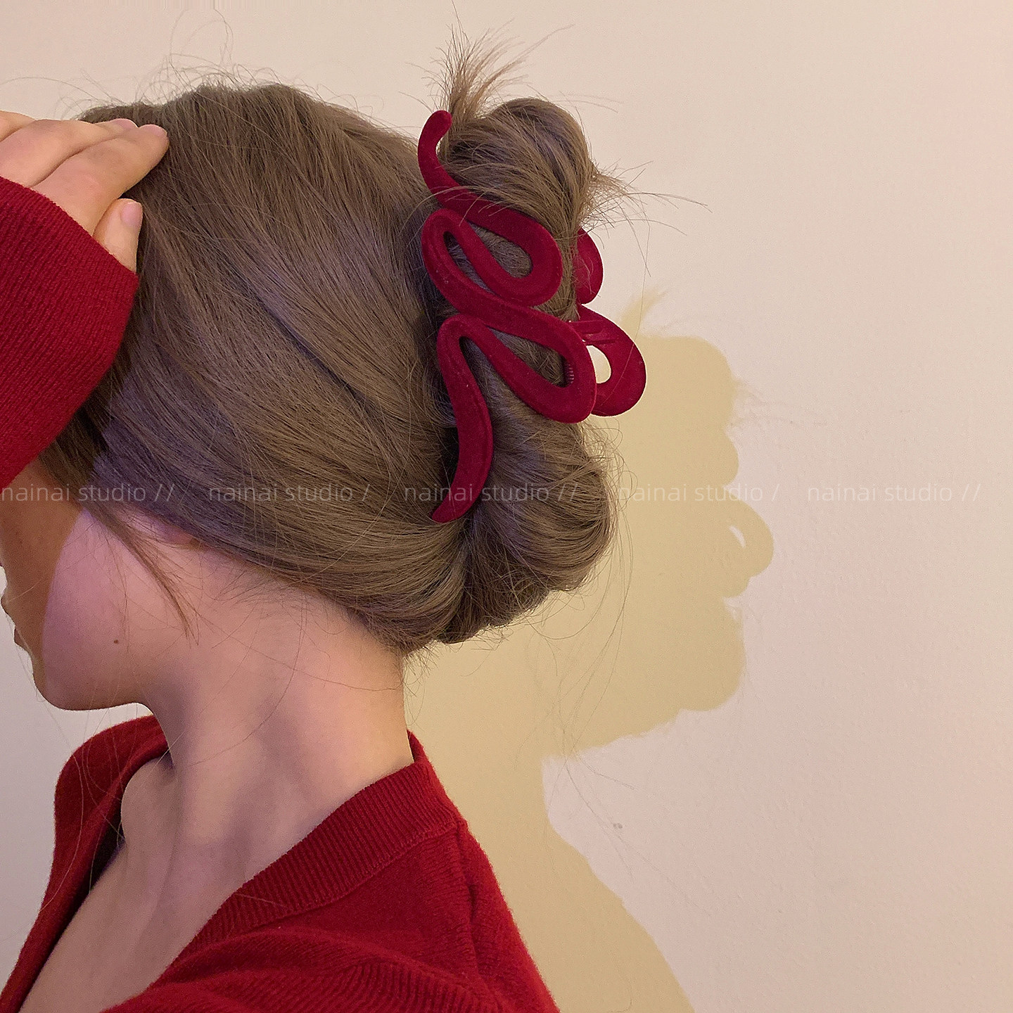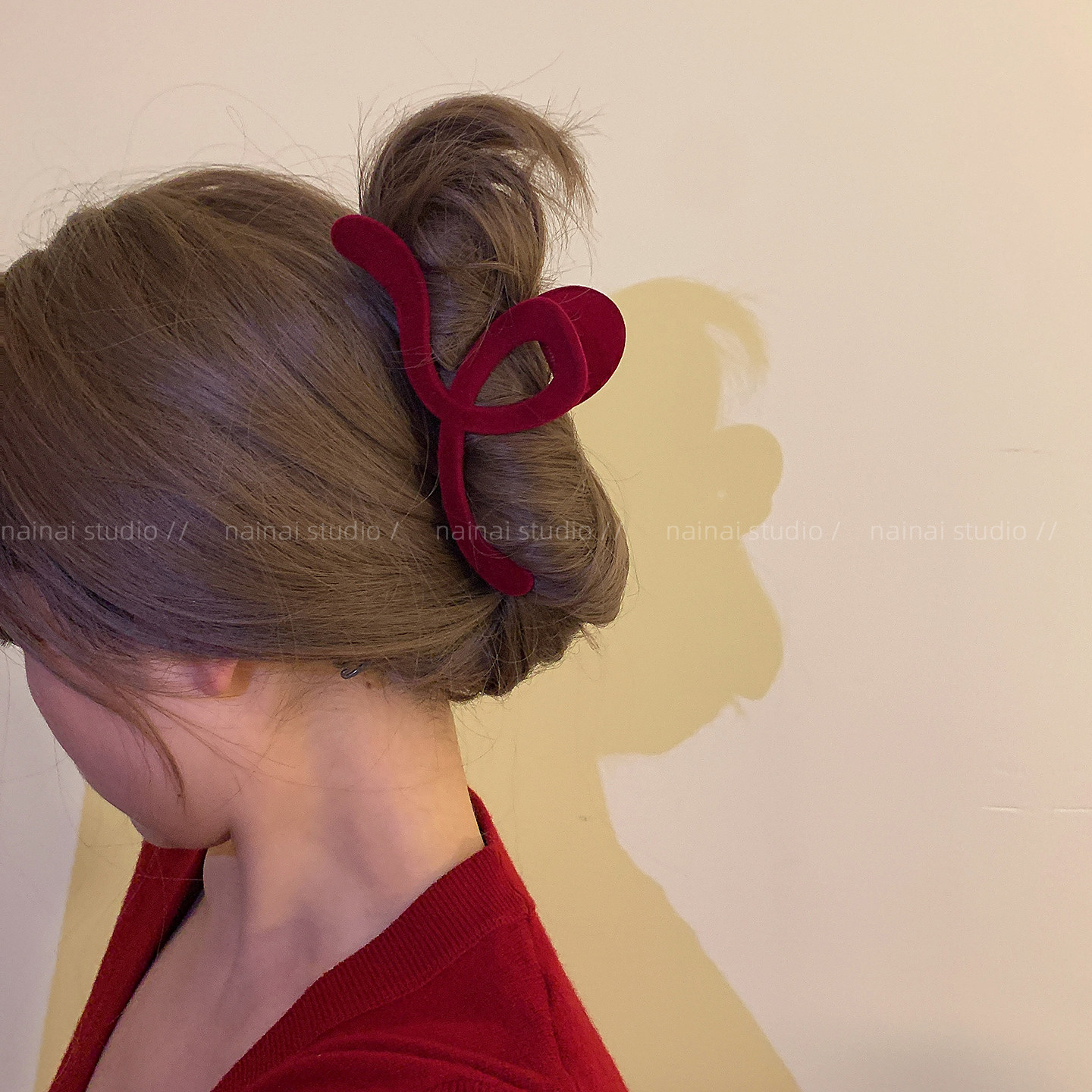 红色植绒抓夹~圣诞节2025秋冬新款大号后脑勺盘发鲨鱼夹发夹发饰A