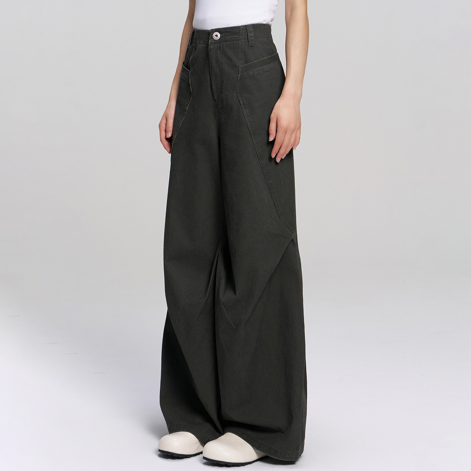 RAPPEYE 美式复古不规则廓形压褶休闲裤阔腿拖地裤水洗分割工装裤