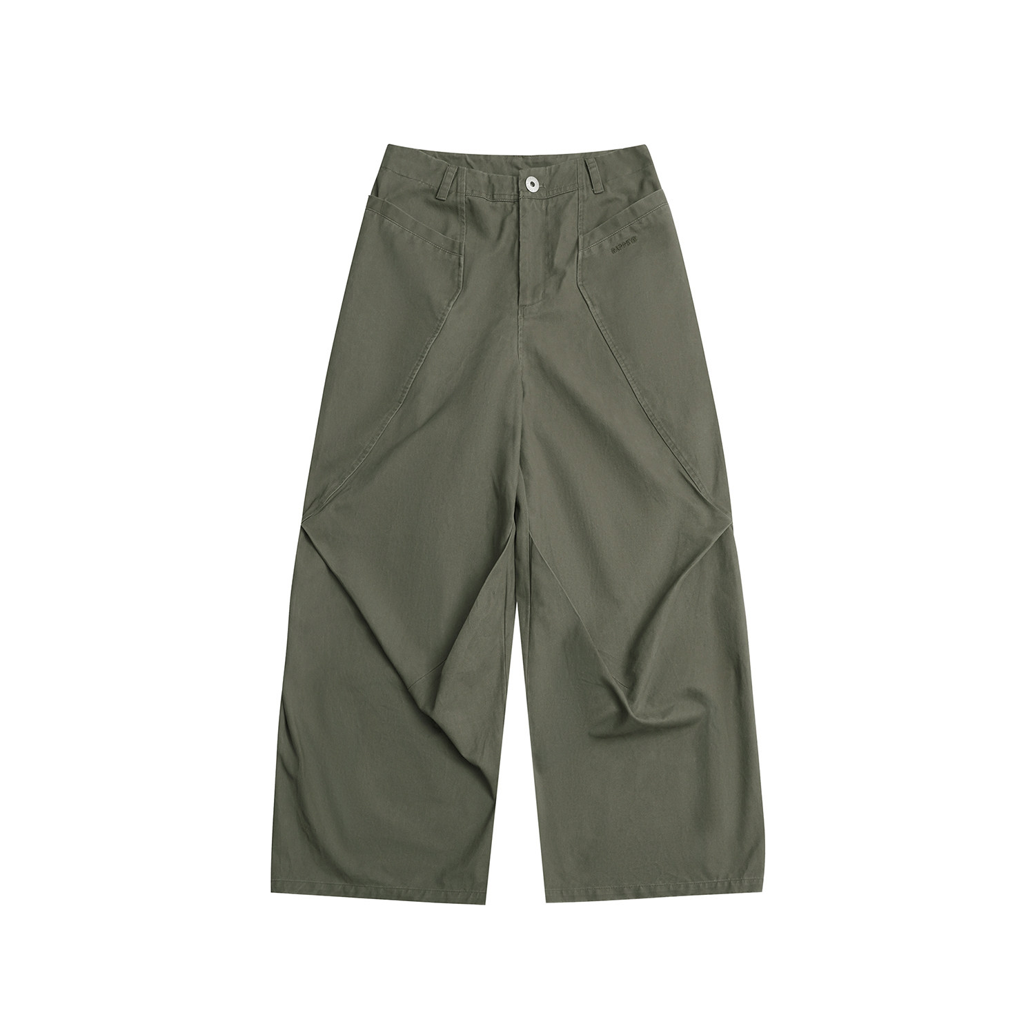 LR MADE 25SS 侧缝打褶 小弯刀垂感 碳磨洗水纯棉休闲廓形长裤