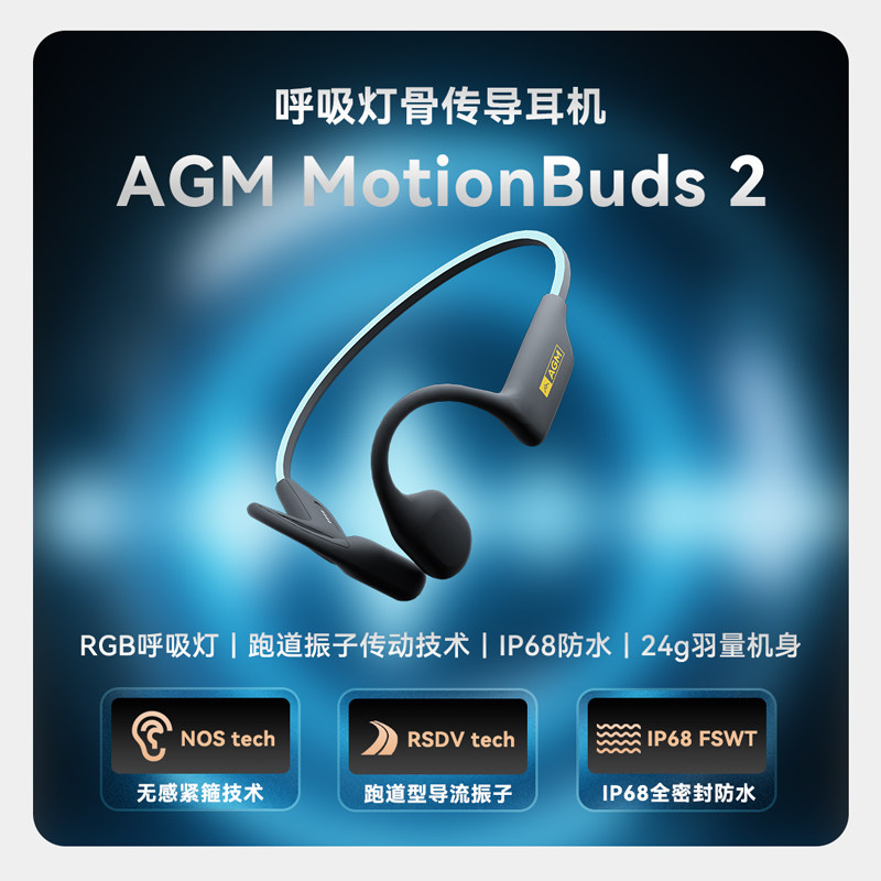 AGM骨传导耳机IP68级防水开放式无线长续航骑行跑步MotionBuds1/2
