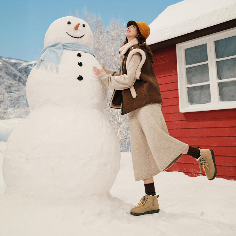 人本厚底雪地靴女款2025新款冬季女鞋东北加绒加厚保暖增高棉鞋