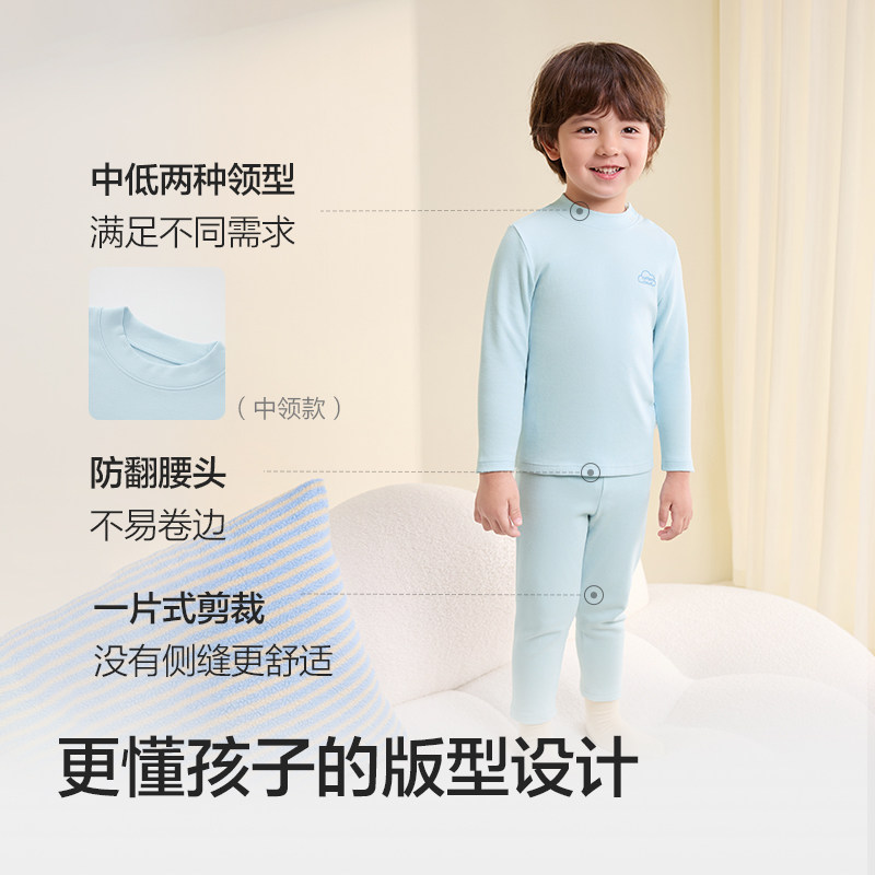 红豆居家儿童内衣套装女童秋衣秋裤男童纯棉圆领打底棉毛衫保暖秋