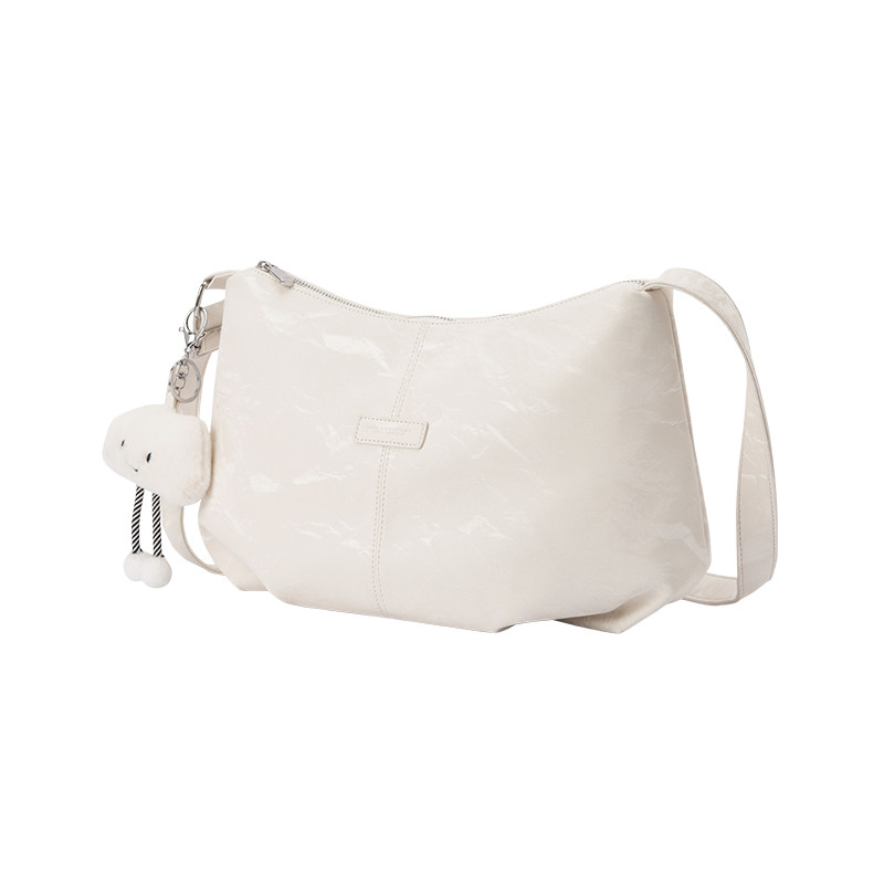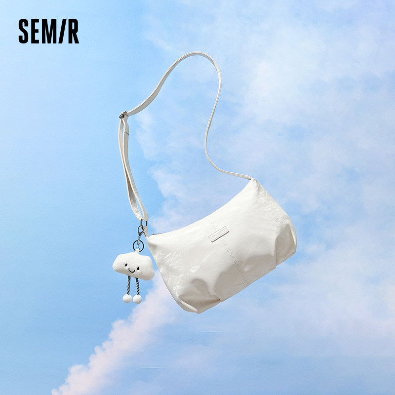 森马包包斜挎包2024新款仿丝绒大容量单肩包设计感褶皱饺子包流行