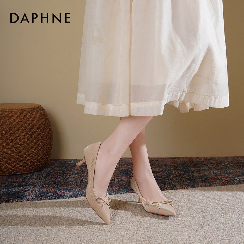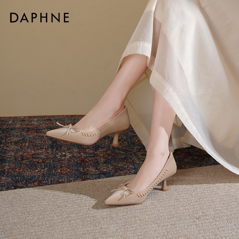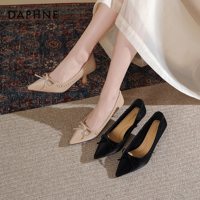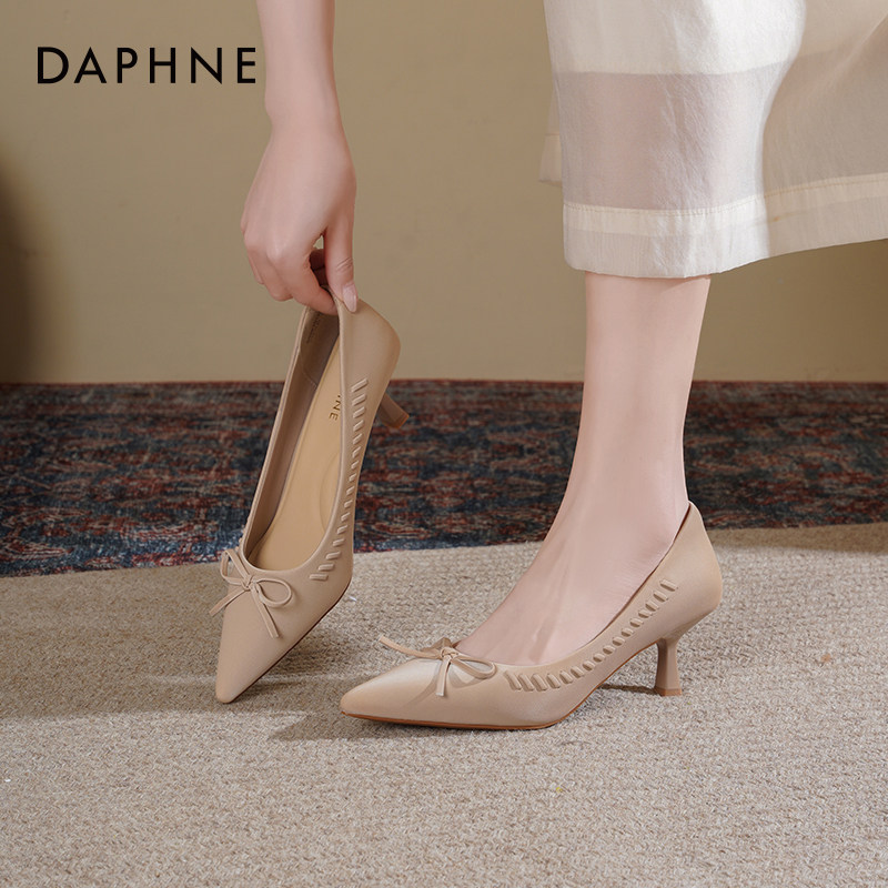 达芙妮尖头高跟鞋女细跟2026新款春季女鞋法式气质蝴蝶结通勤单鞋