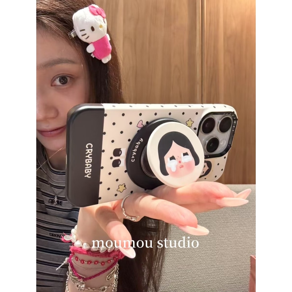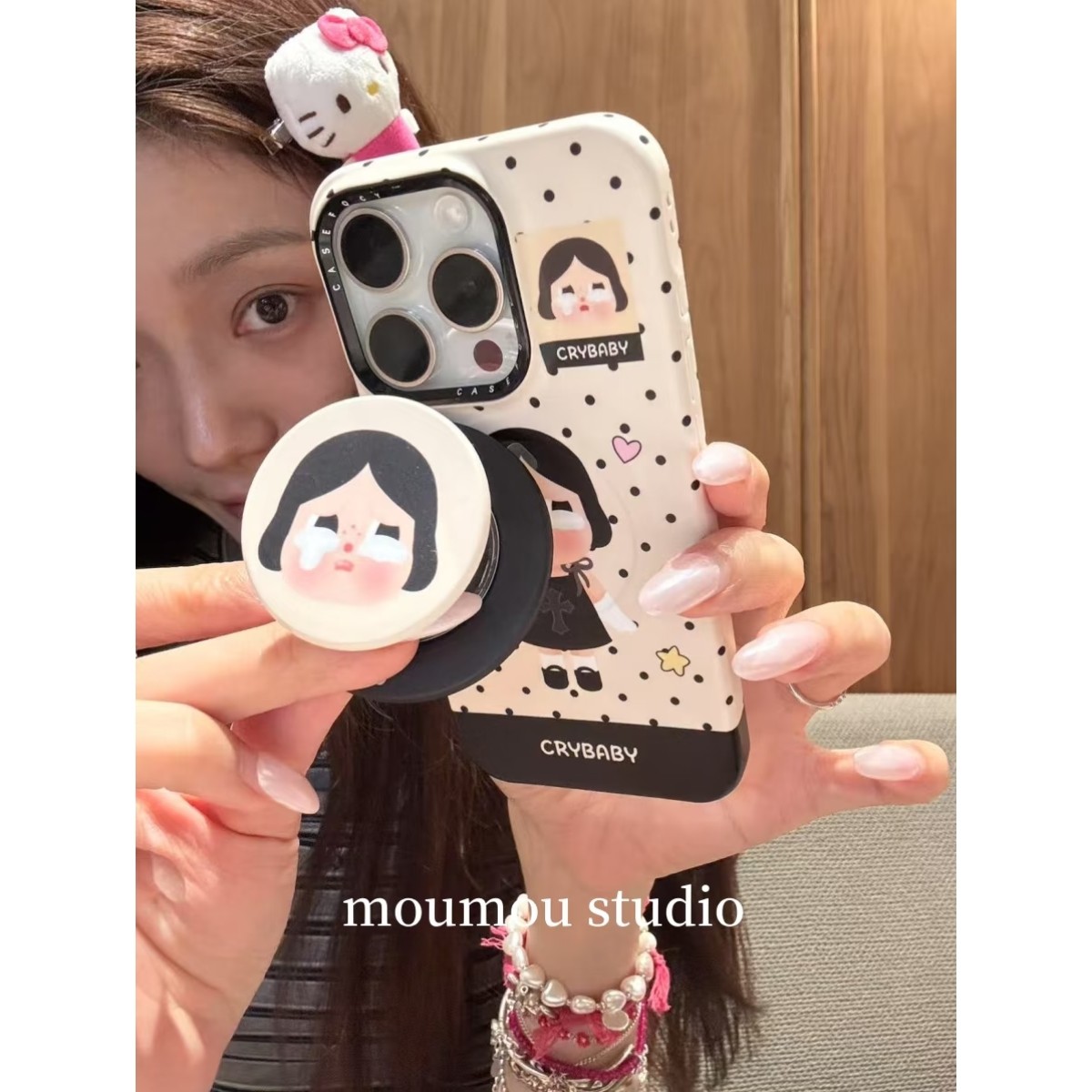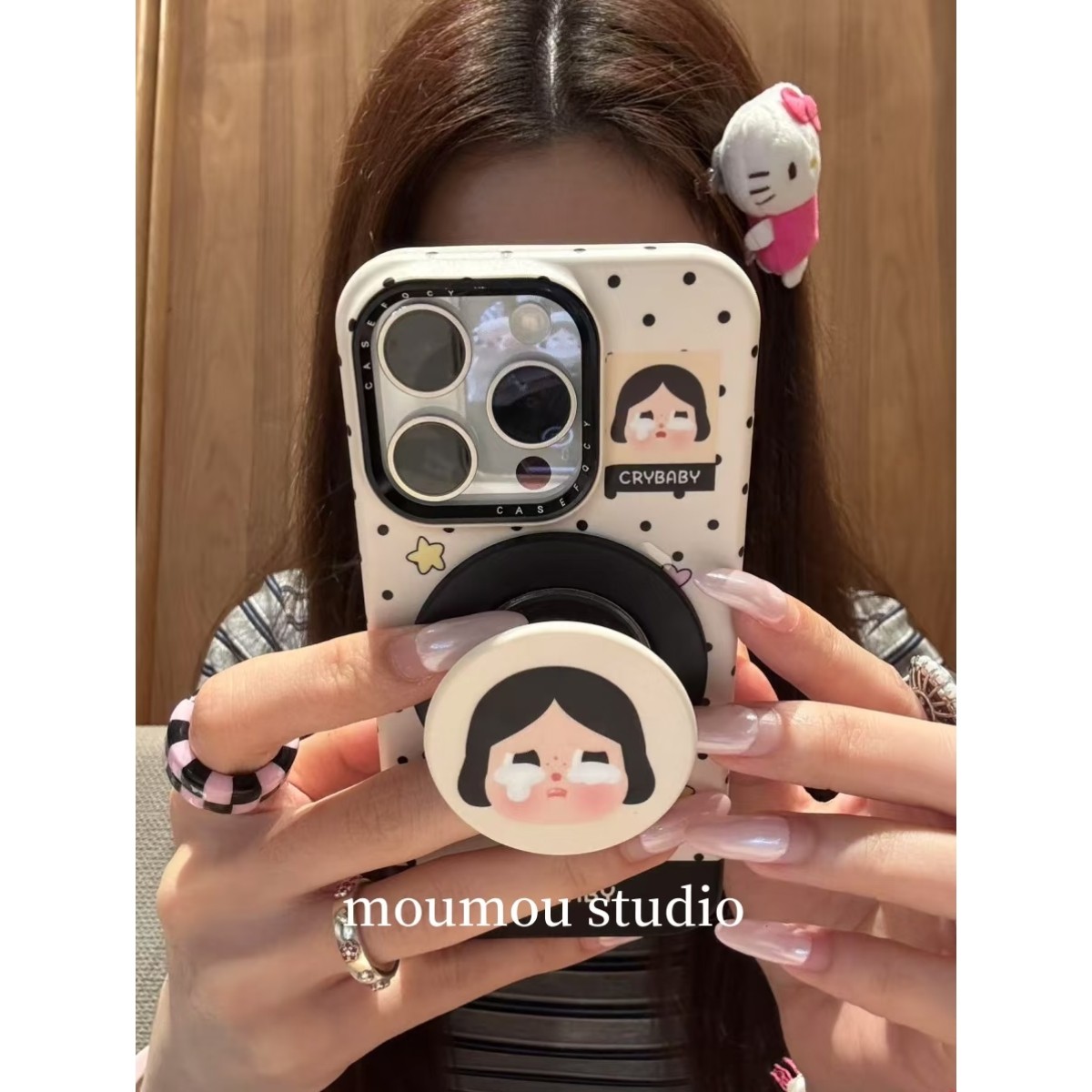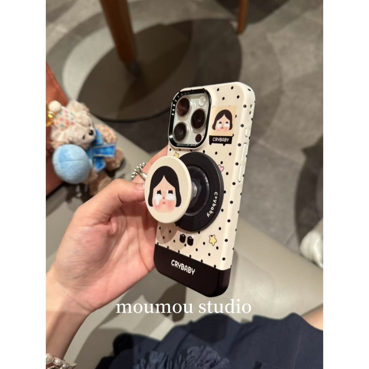 MOMOMOSTUDIOS韩系ins可爱波点哭娃磁吸支架适用iPhone16promax新款15pro苹果手机壳14pro磨砂13半包防摔硬壳