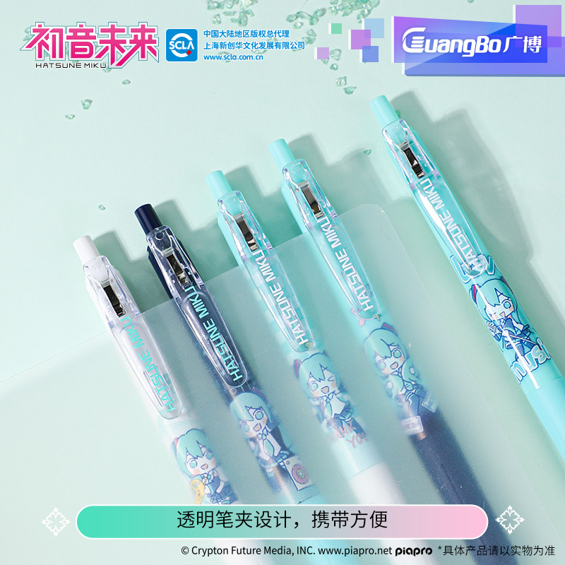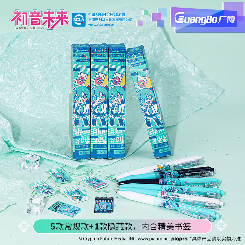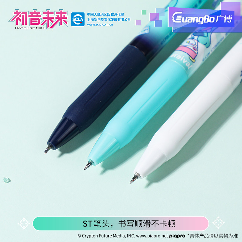广博初音未来盲盒笔联名笔速干ST刷题按动中性笔初中生文具联名盲盒笔臻顺滑中性笔软握笔中性笔黑笔甜趣萌音