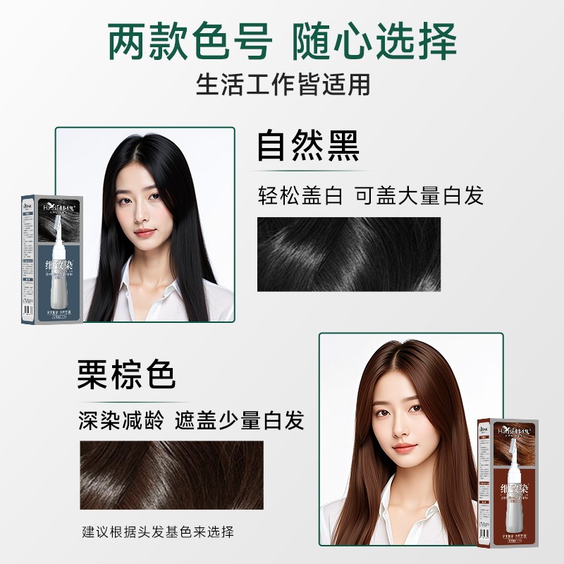 韩金靓正品染发剂黑茶色棕植物泡泡刺激无纯自己在家染发膏盖白女