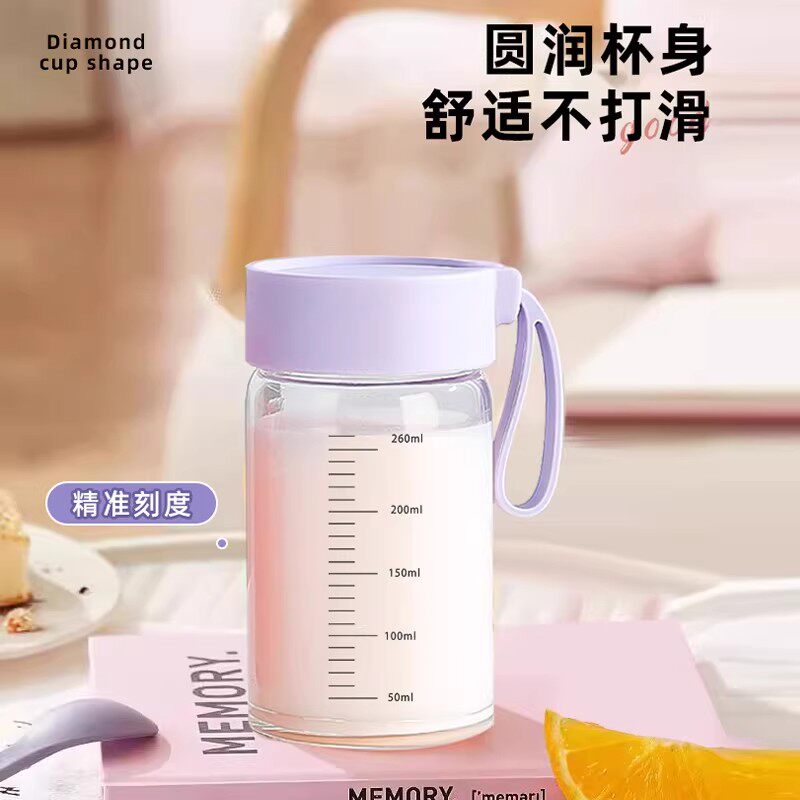 玻璃豆浆杯家用便携外带盖刻度牛奶杯微波炉可加热大人上班族专用
