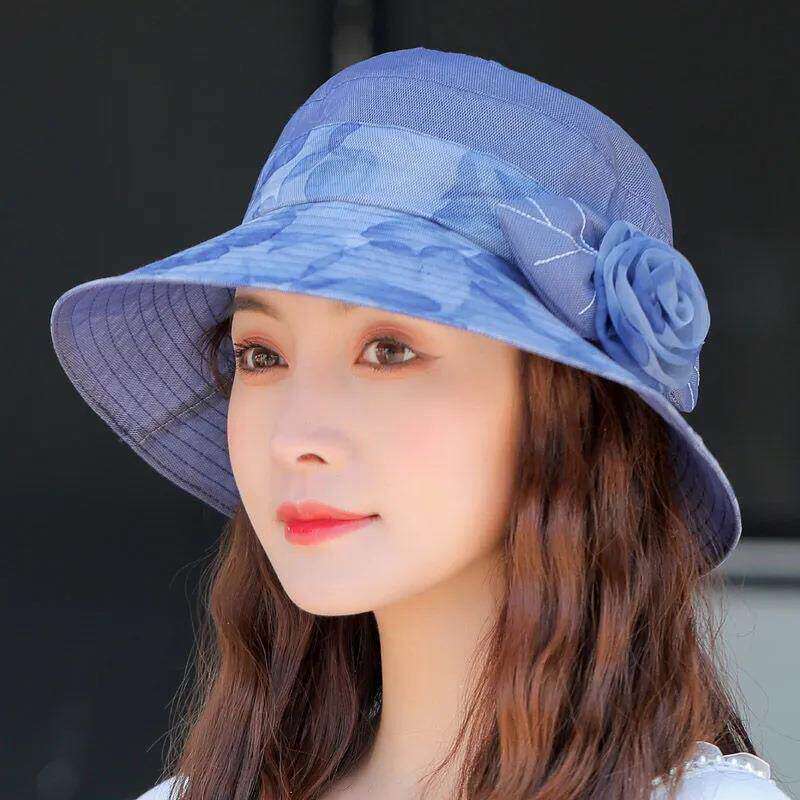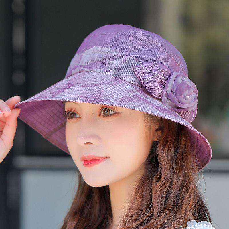 春夏天中老年人渔夫帽夏季薄款女防晒凉帽透气妈妈遮阳帽紫色蓝色