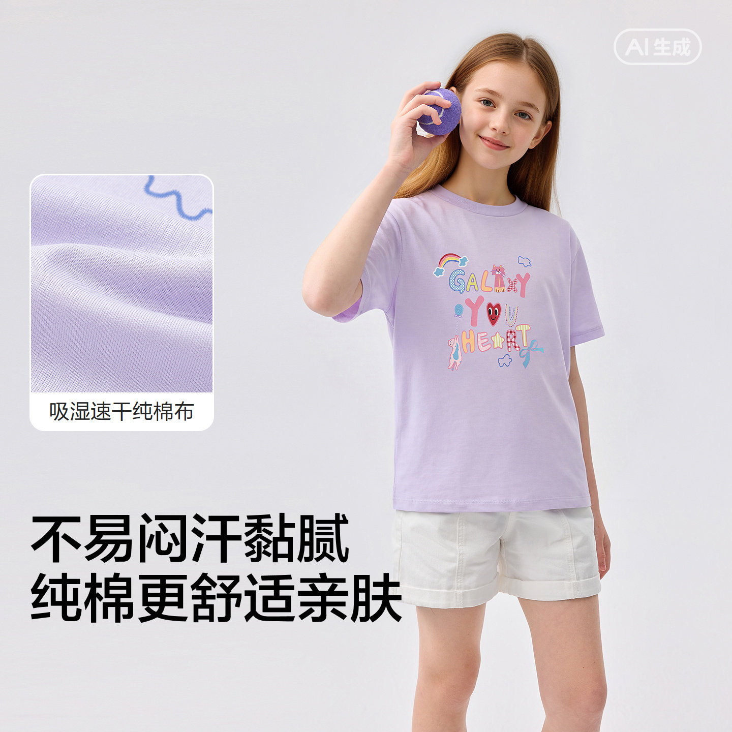吸湿速干纯棉t恤,甜美贴布绣感印花