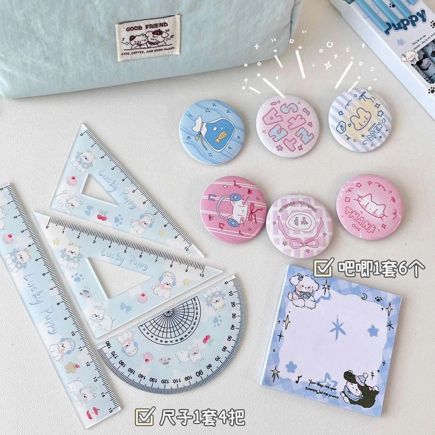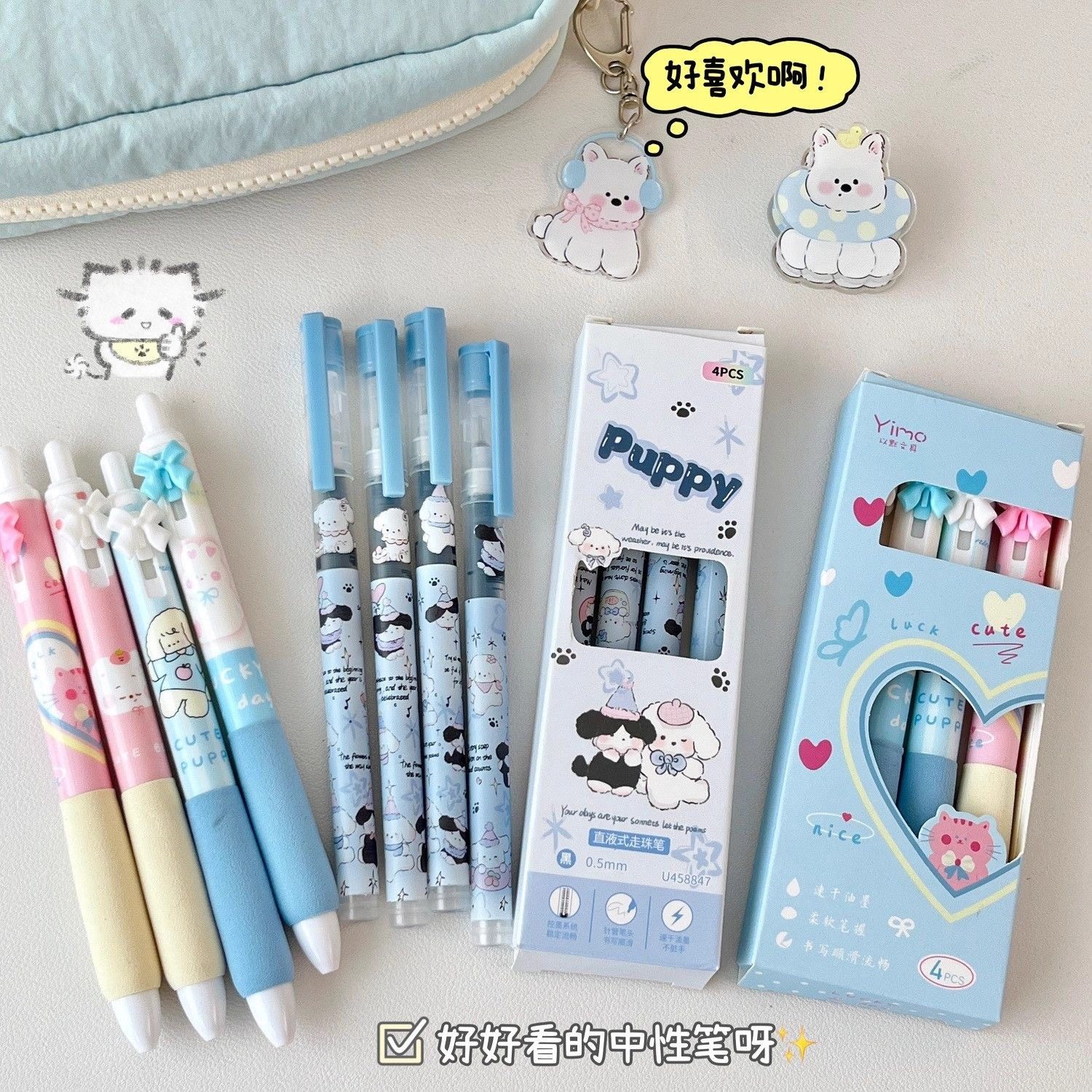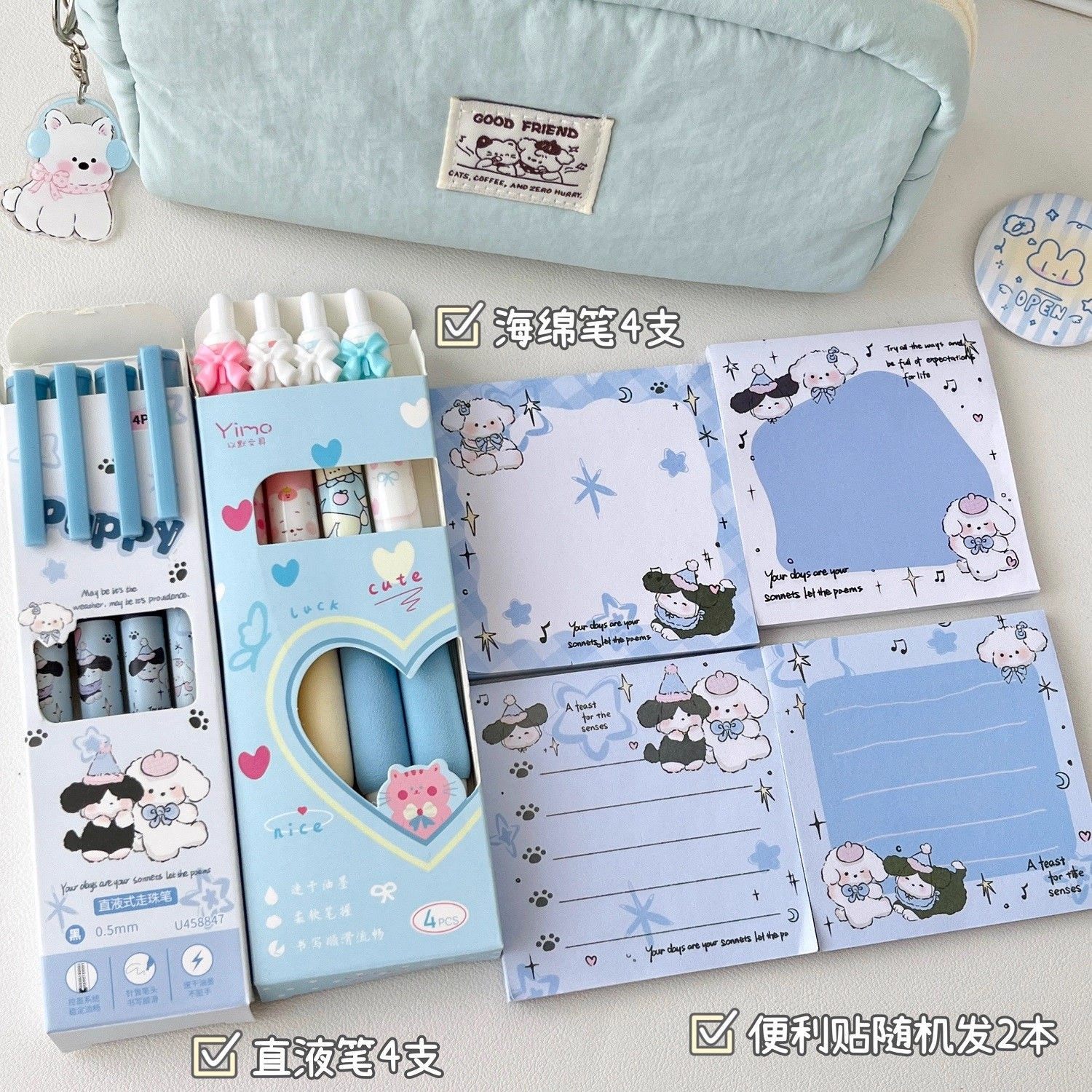奶fufu!盐系笔袋初中生女孩蓝色猫咪文具盒高颜值ins风高中生2025新款女生铅笔盒小学生7生日礼物文具收纳包