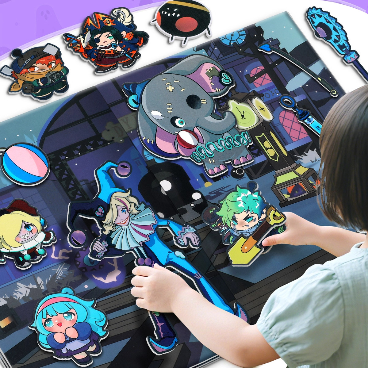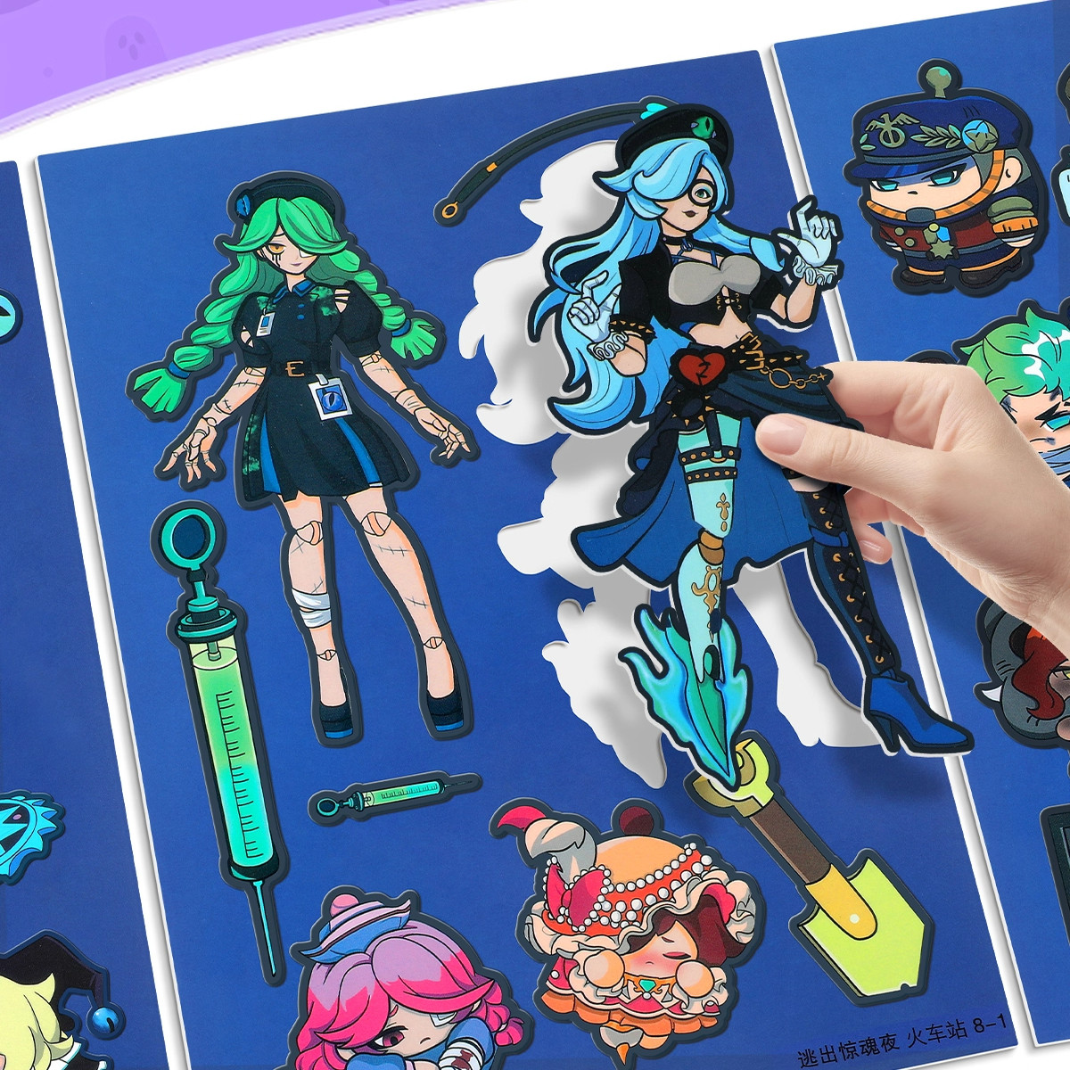 蛋仔派对逃出惊魂夜安静书儿童换装贴纸书磁吸贴画免裁剪马戏团diy手工材料包儿童益智玩具艾琳海瑟斯黛拉6岁