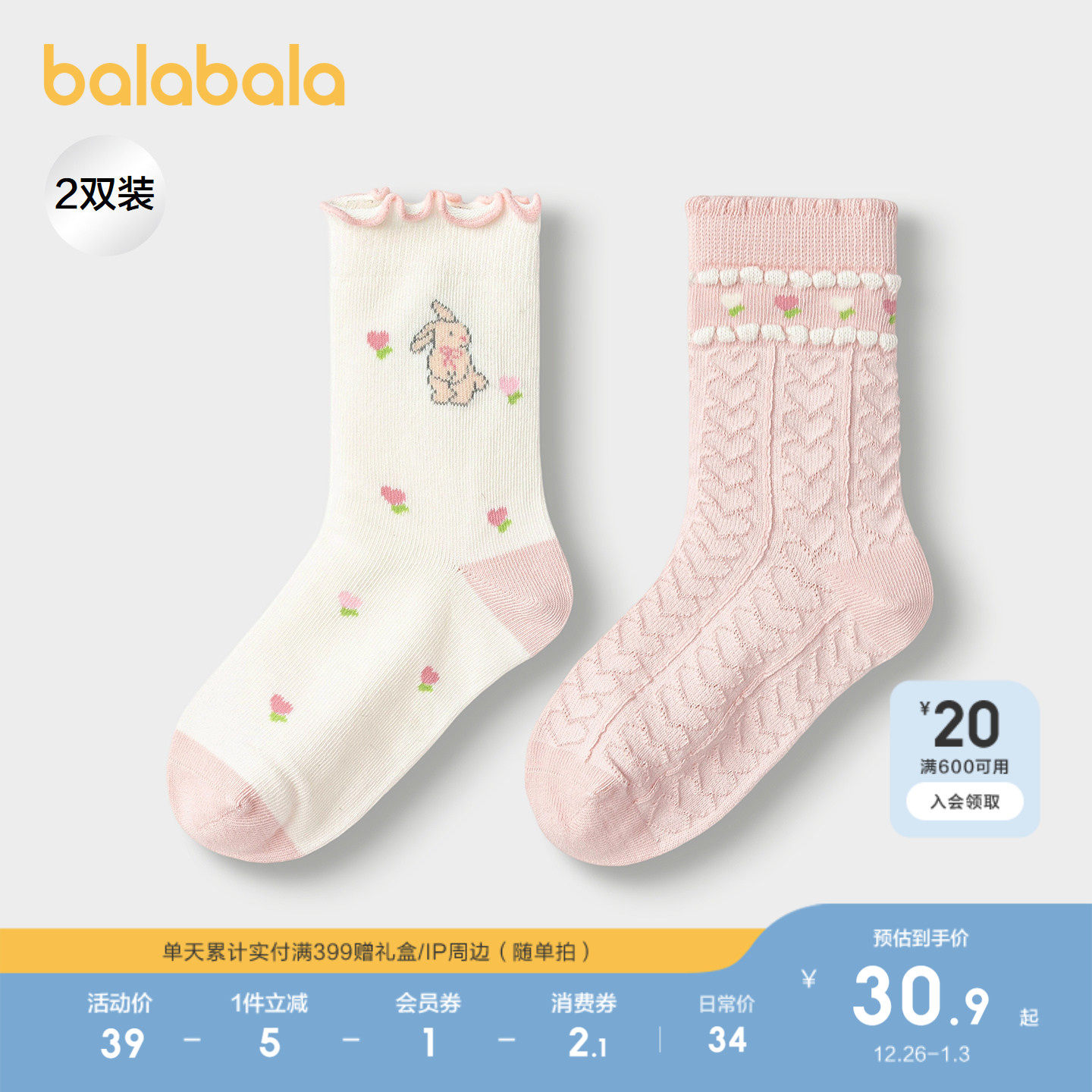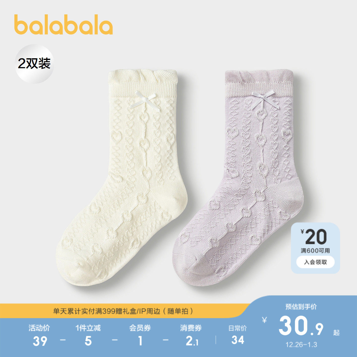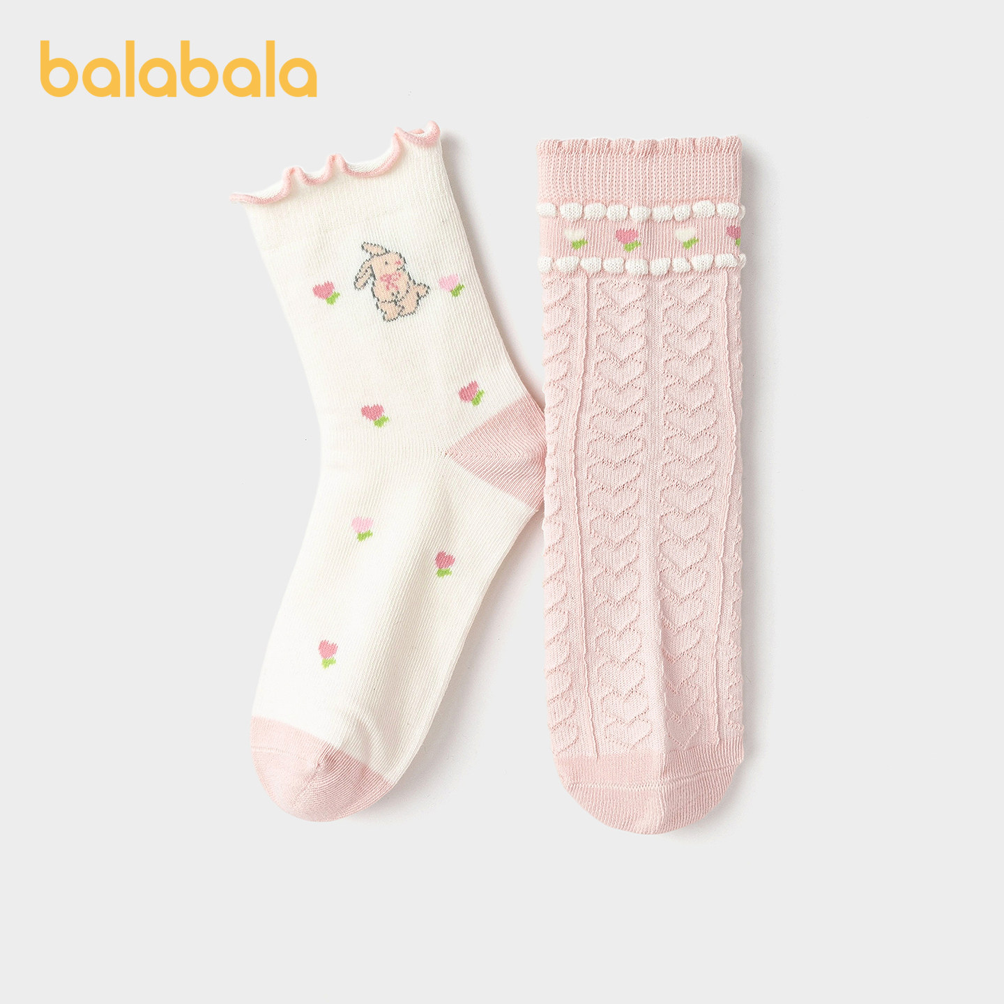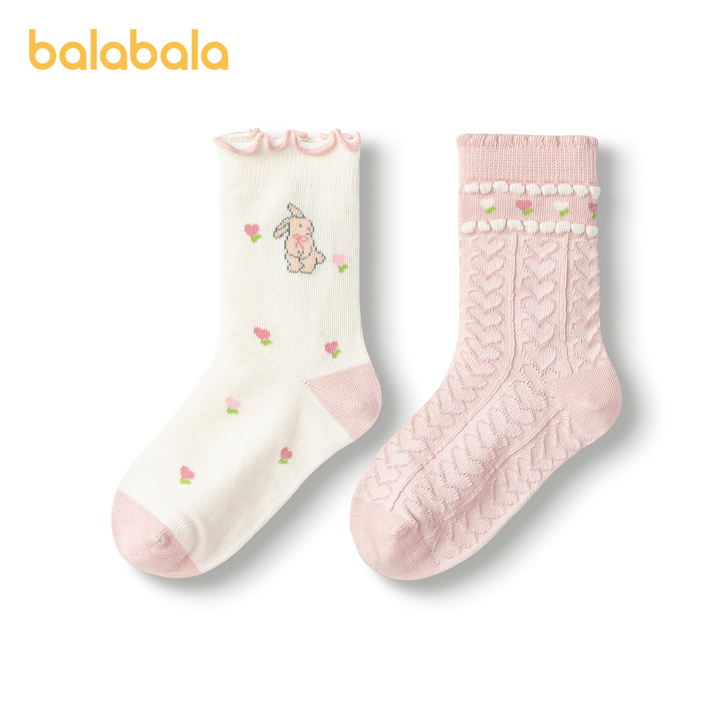 【商场同款】巴拉巴拉儿童袜子秋冬女童棉袜大童提花甜美袜两双装