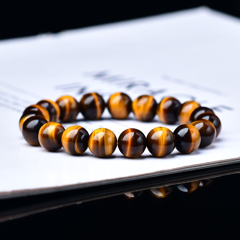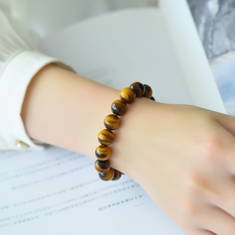 天然黄虎眼石手链招财虎睛石手串霸气情侣礼物转运木变石水晶串珠