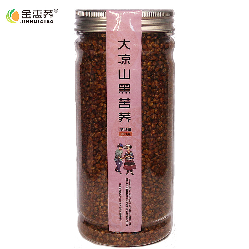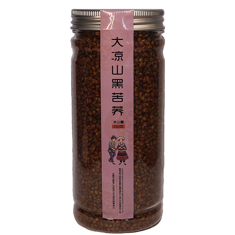 【买1送1】黑苦荞茶四川大凉山特产300g/罐装全胚麦香型茶荞麦茶
