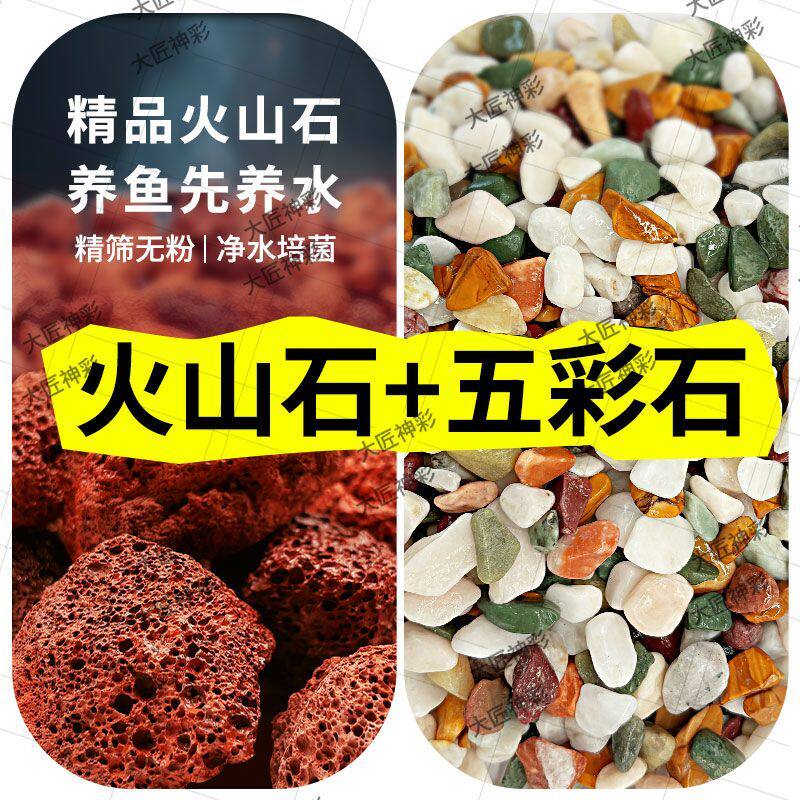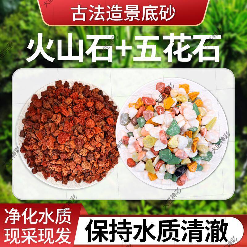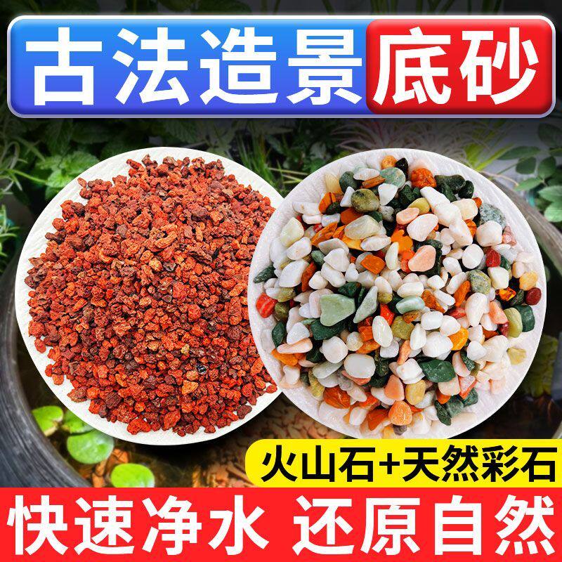 火山石原生鱼缸古法养鱼底砂造景砂铺底生态沙水培天然五彩雨花石