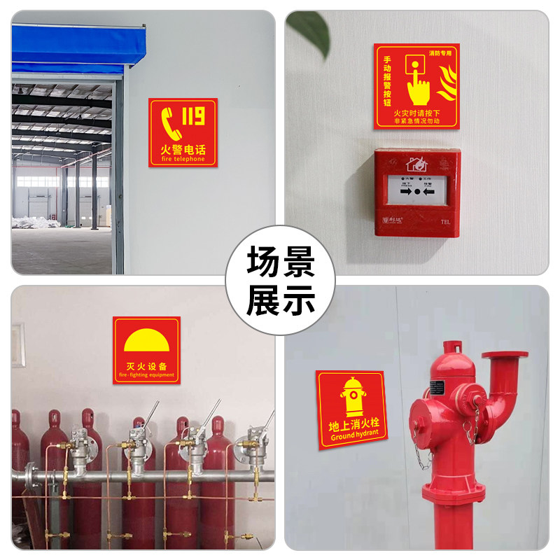 手动报警按钮标识牌火灾消防标志标牌专用声光报警器灭火器防火卷帘门警示墙贴警示牌消火栓启泵按钮指示贴纸