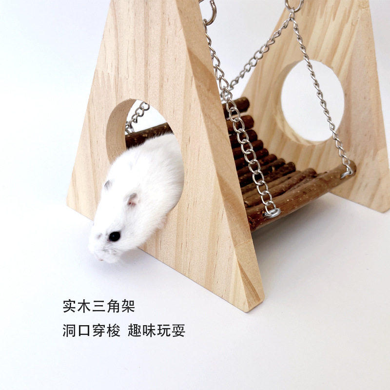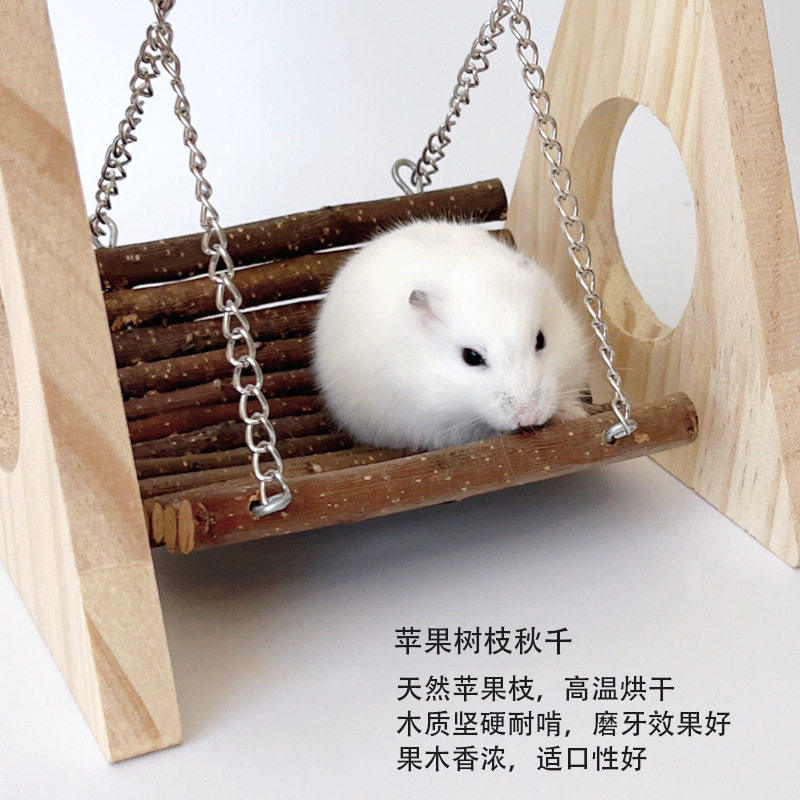 仓鼠木质玩具苹果枝秋千吊床金丝熊穿梭玩耍树洞小宠磨牙造景用品