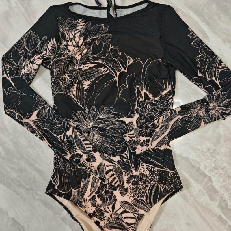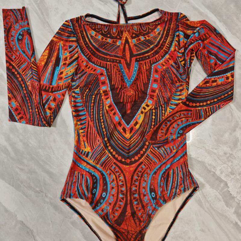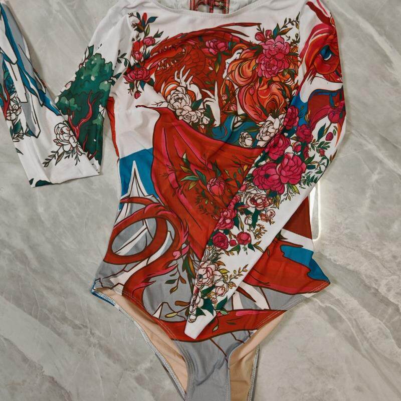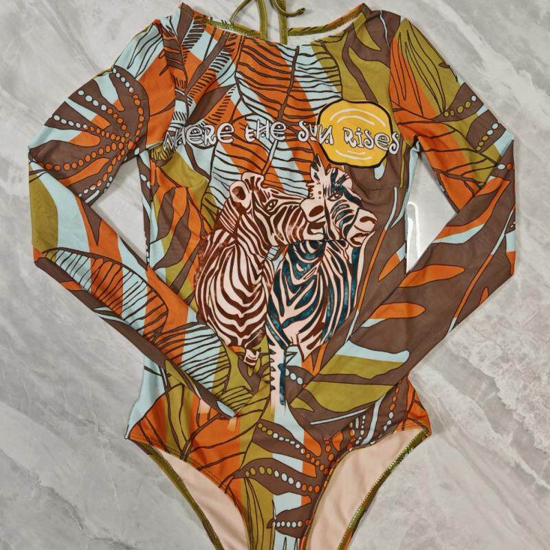 源头厂家俄罗斯热销多色网纱防晒连体泳衣性感长袖泳装女 无罩杯