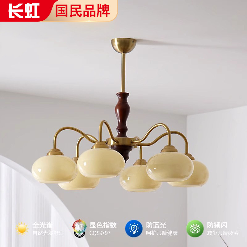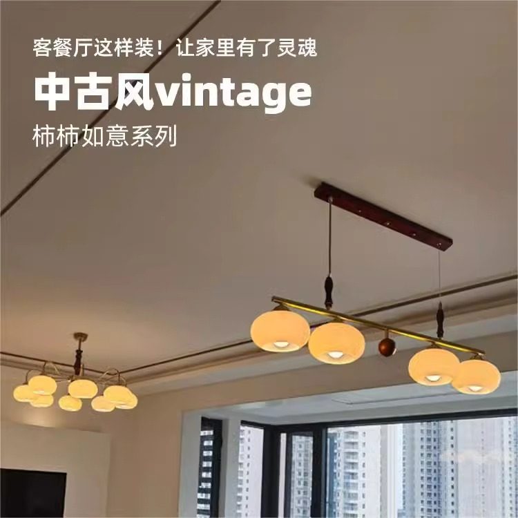 客厅吊灯2025新款卧室柿子吊灯中古vintage田园中古奶油风客厅灯