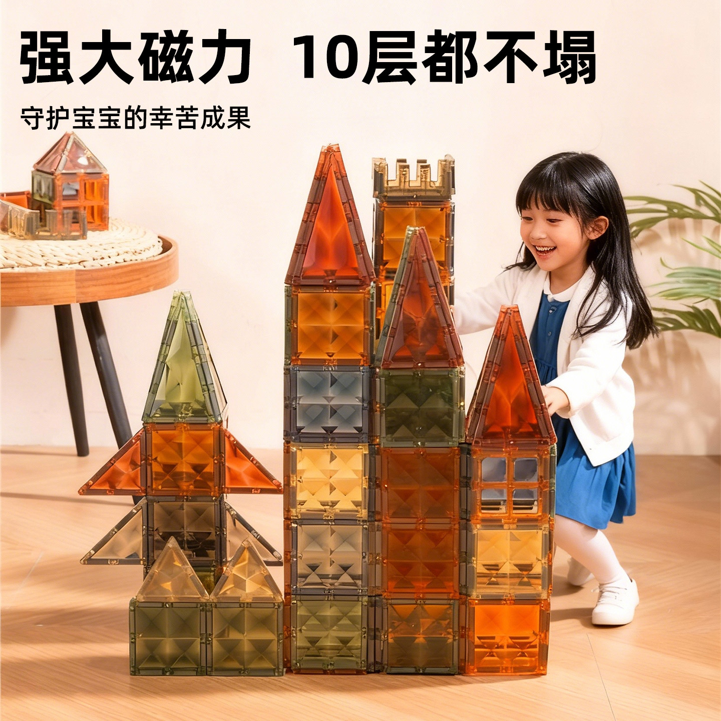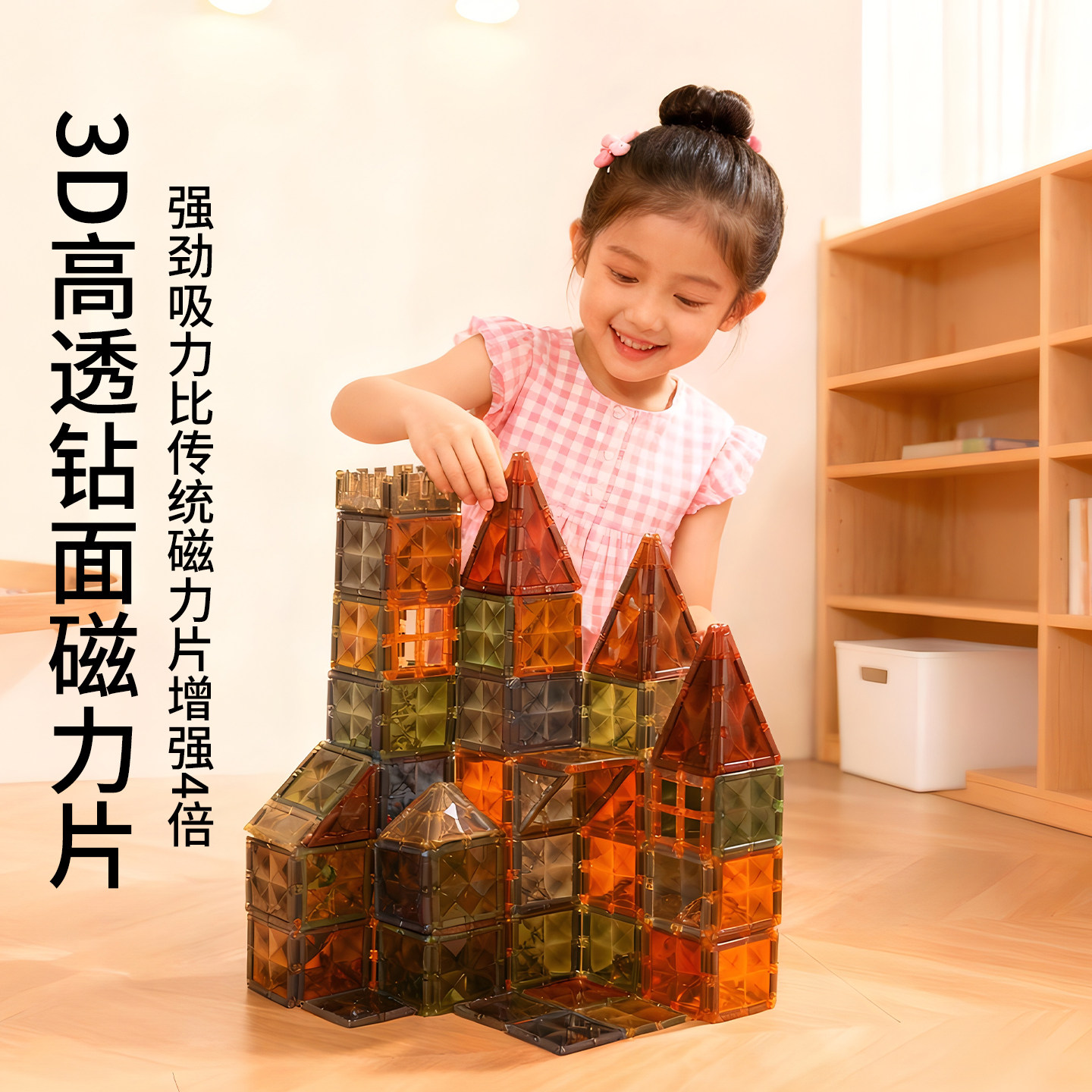 儿童磁力片彩窗磁吸积木3到6岁男孩女孩益智拼装玩具生日礼物方块