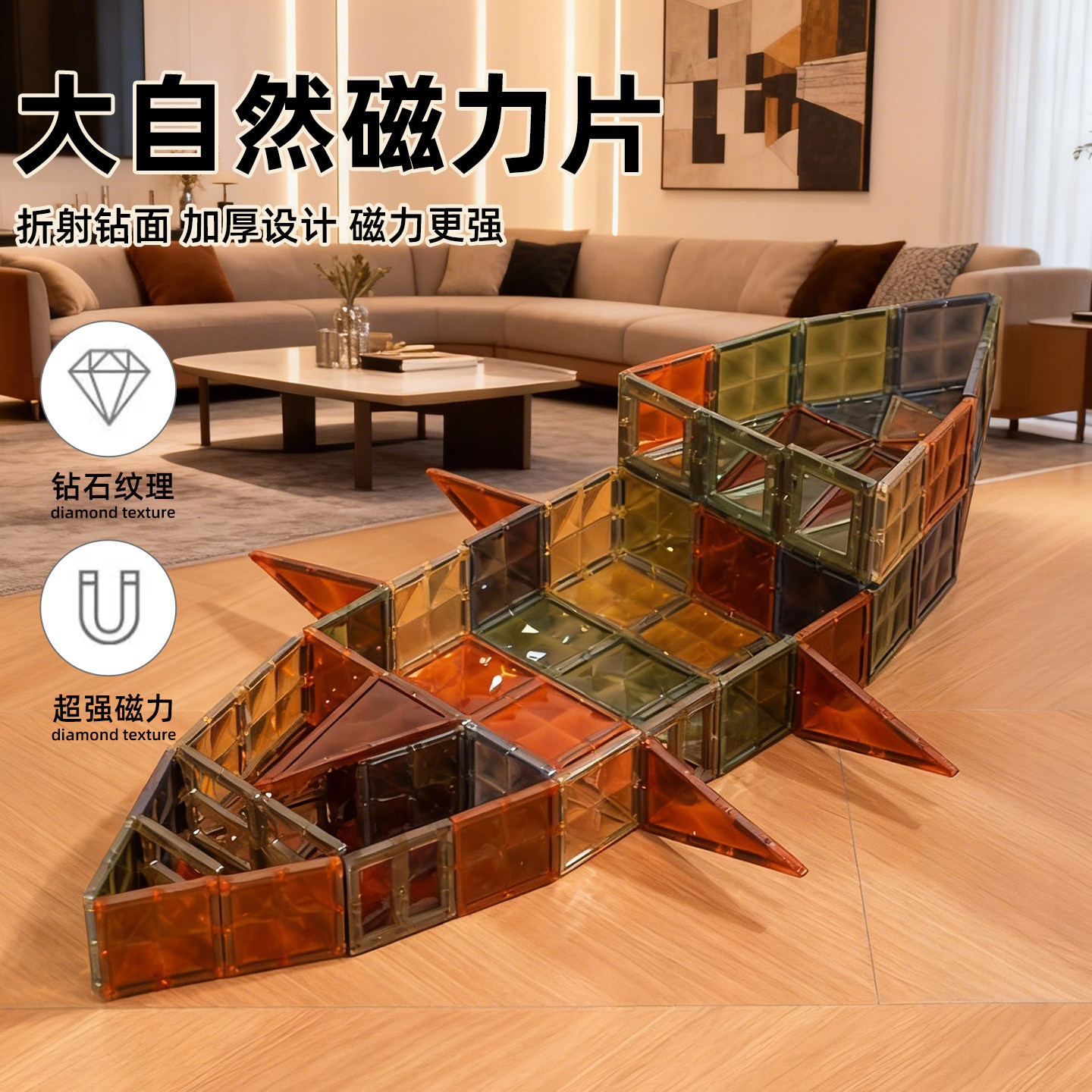 彩窗磁力片儿童益智玩具积木磁力拼图强磁贴男女孩圣诞礼物大自然