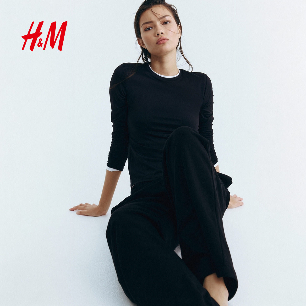 HM女装T恤冬季弹性圆领修身气质舒适休闲汗布打底内搭上衣1191700