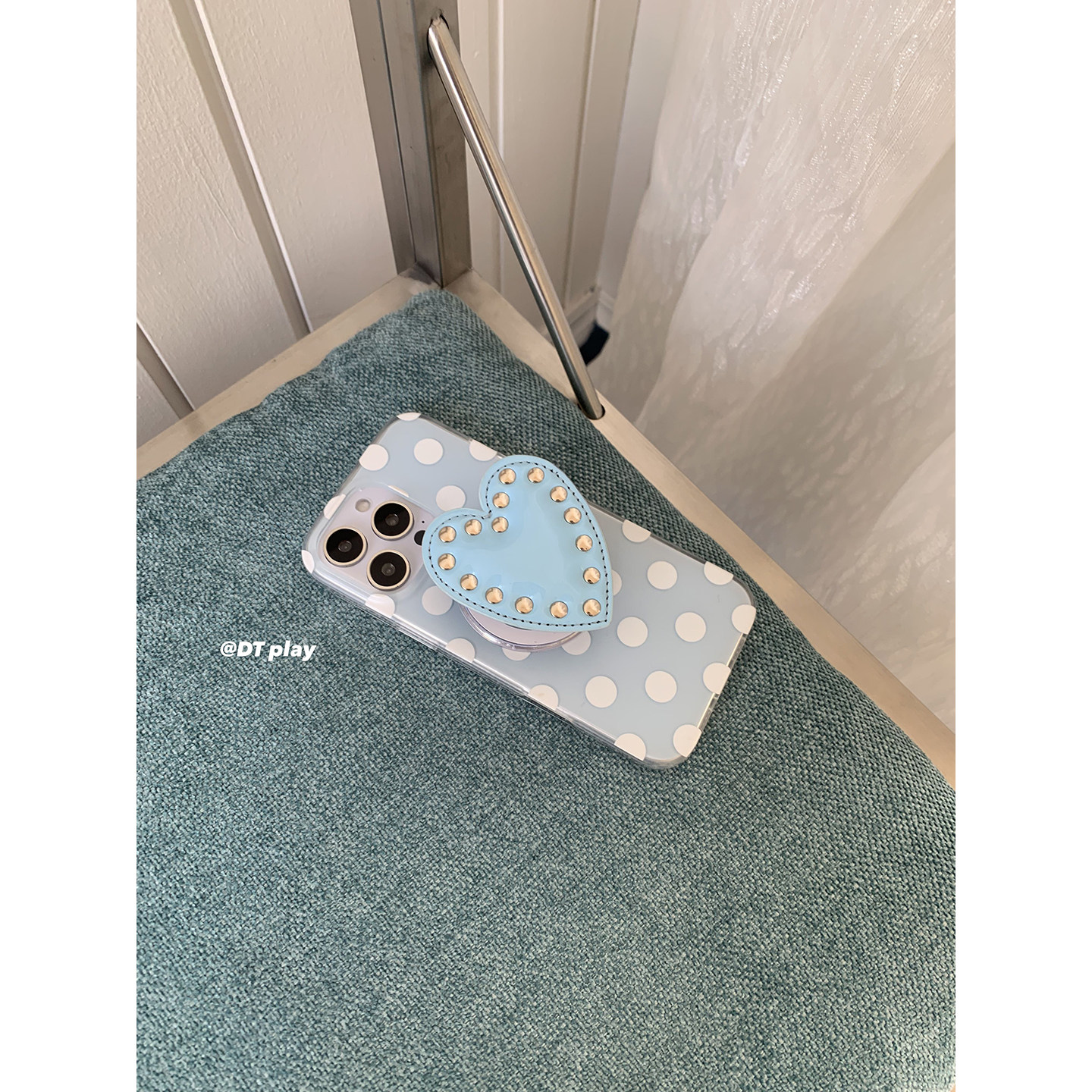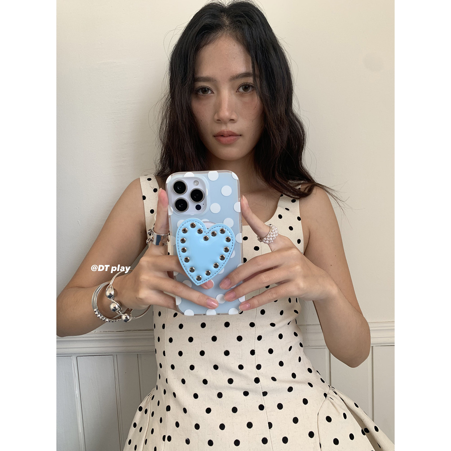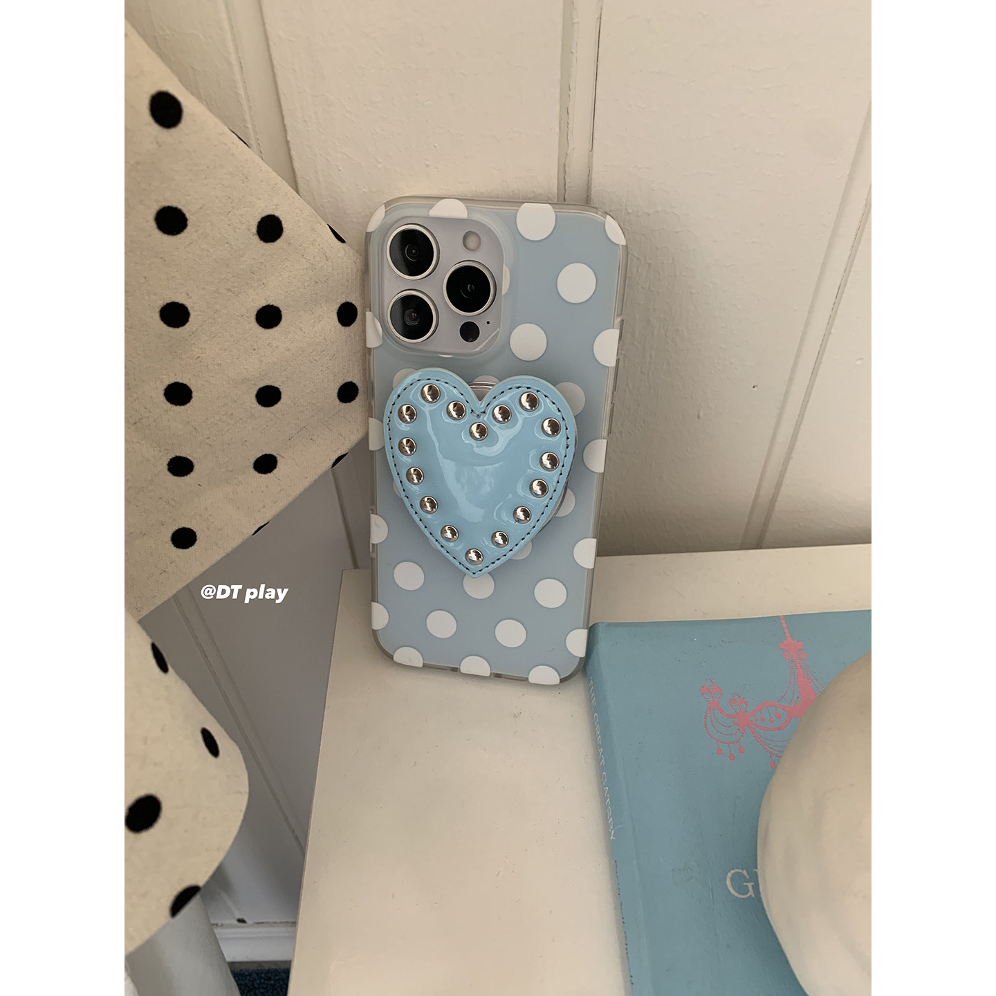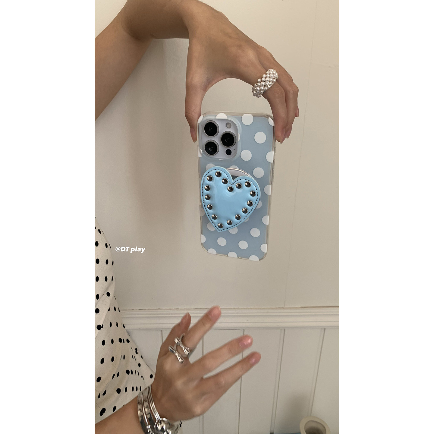 DT play 小众蓝色波点爱心铆钉磁吸韩国ins博主小众设计适用于iphone17promax/16/15苹果14/13手机壳保护套