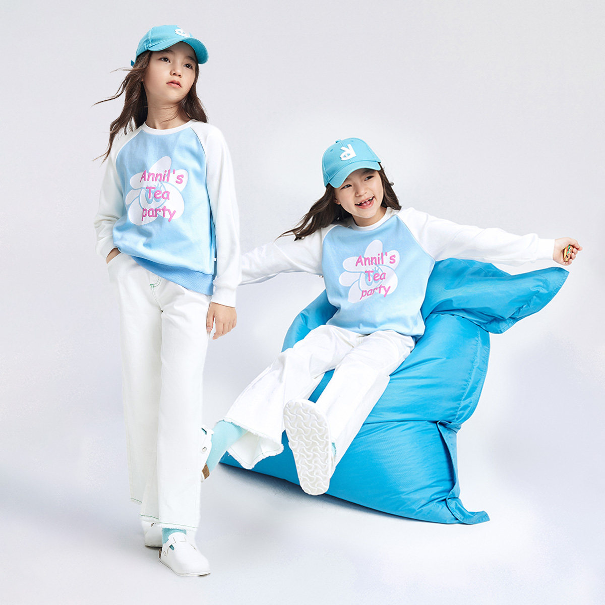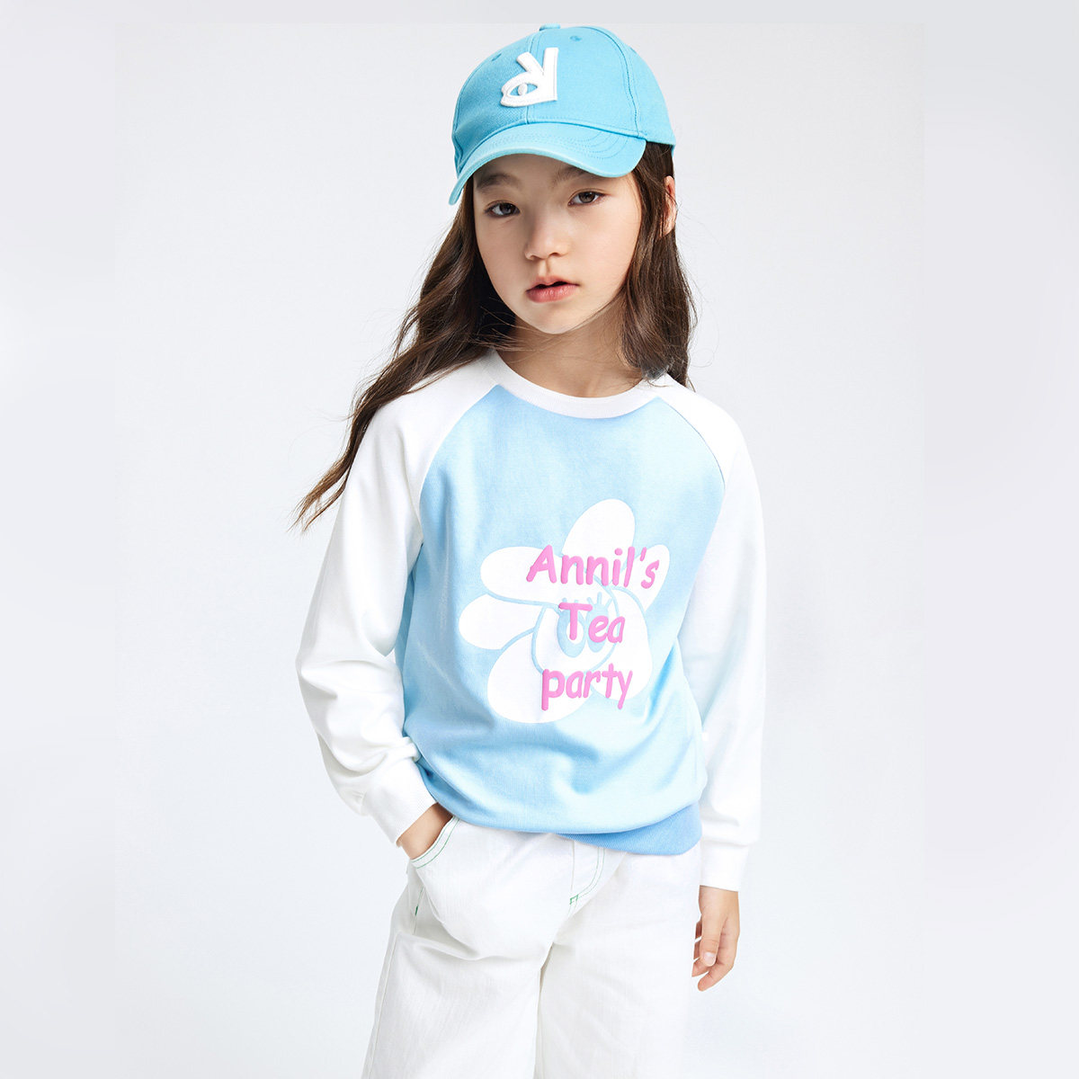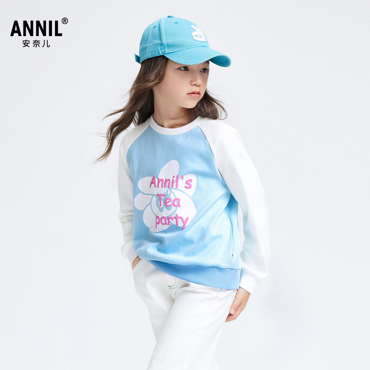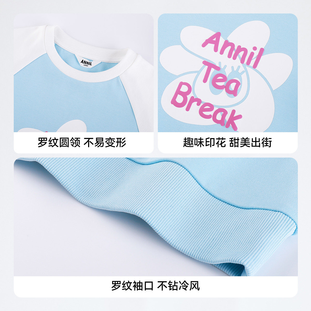 安奈儿童装女童卫衣秋拼色休闲甜美印花清新弹力长袖