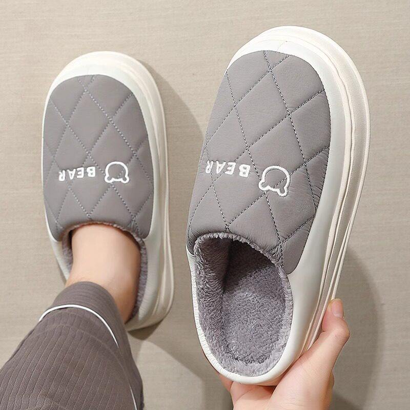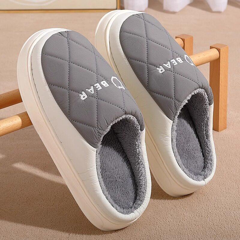 朴西棉拖鞋女士秋冬季厚底简约保暖室内居家用软底防滑情侣棉拖男