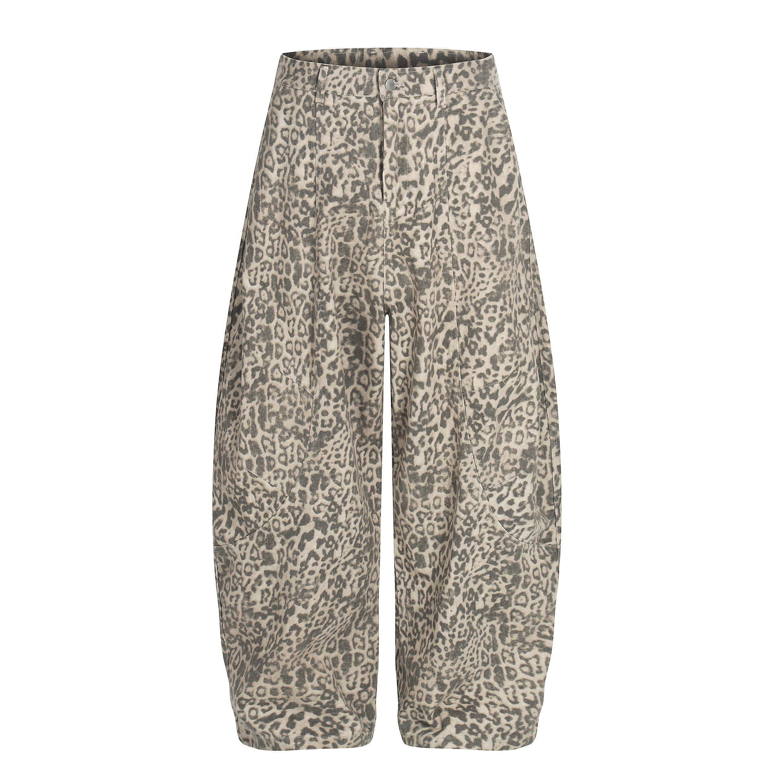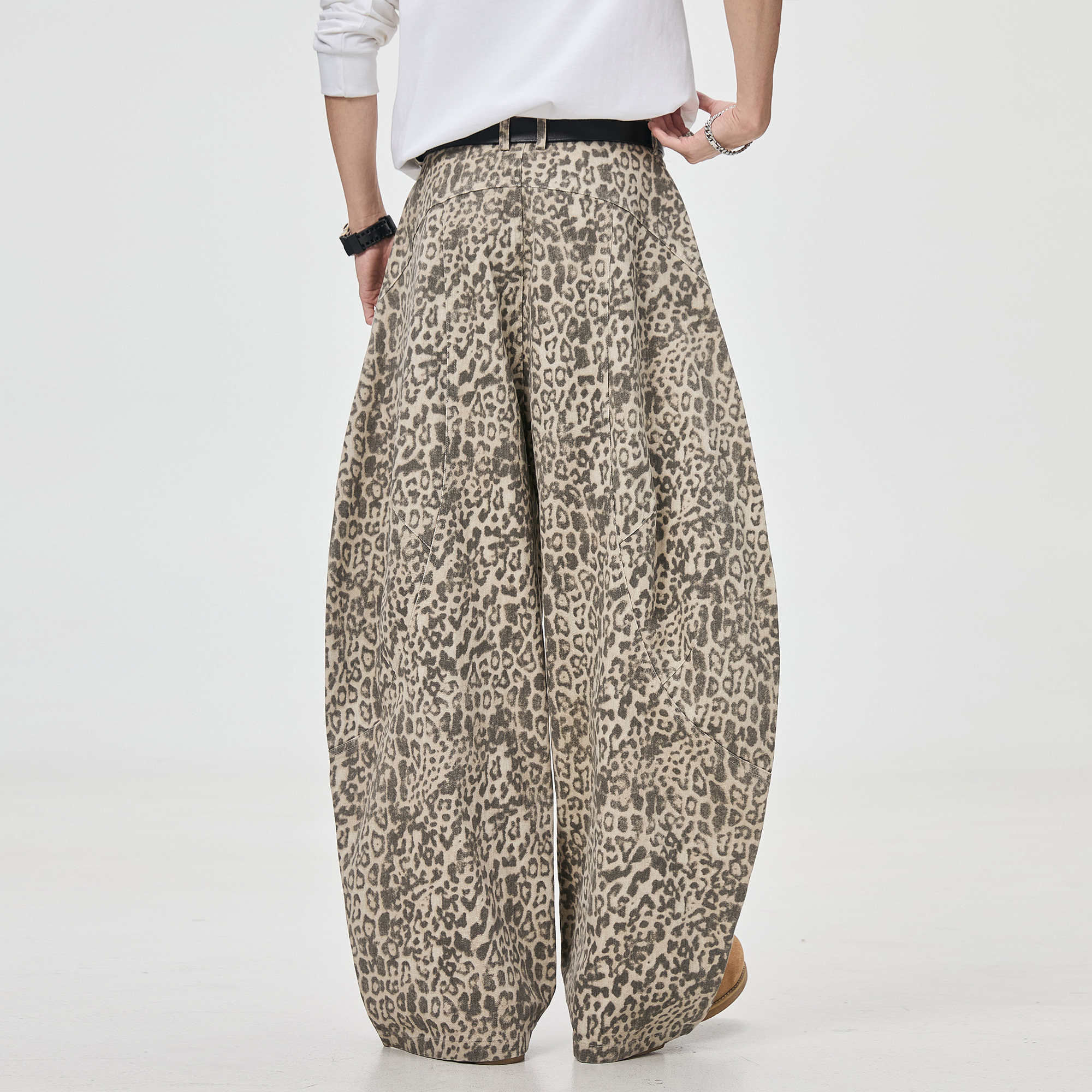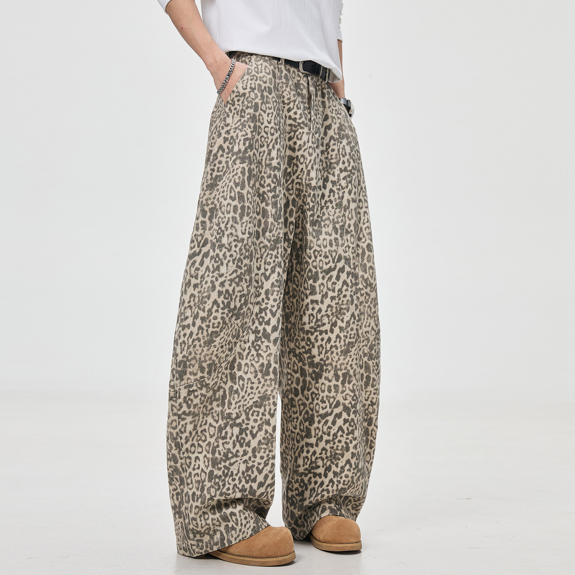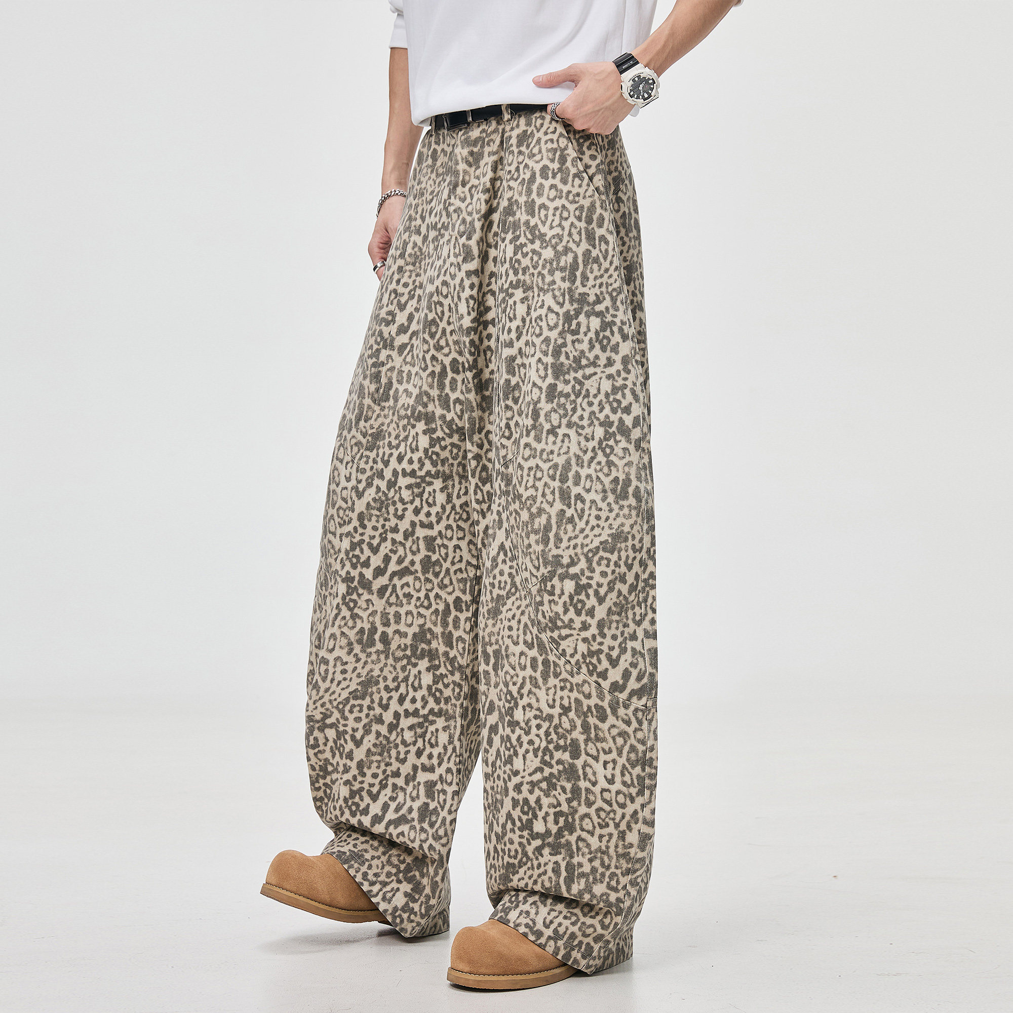 ALLIN 豹纹弯刀休闲裤男春秋美式做旧宽松直筒解构廓形阔腿长裤子
