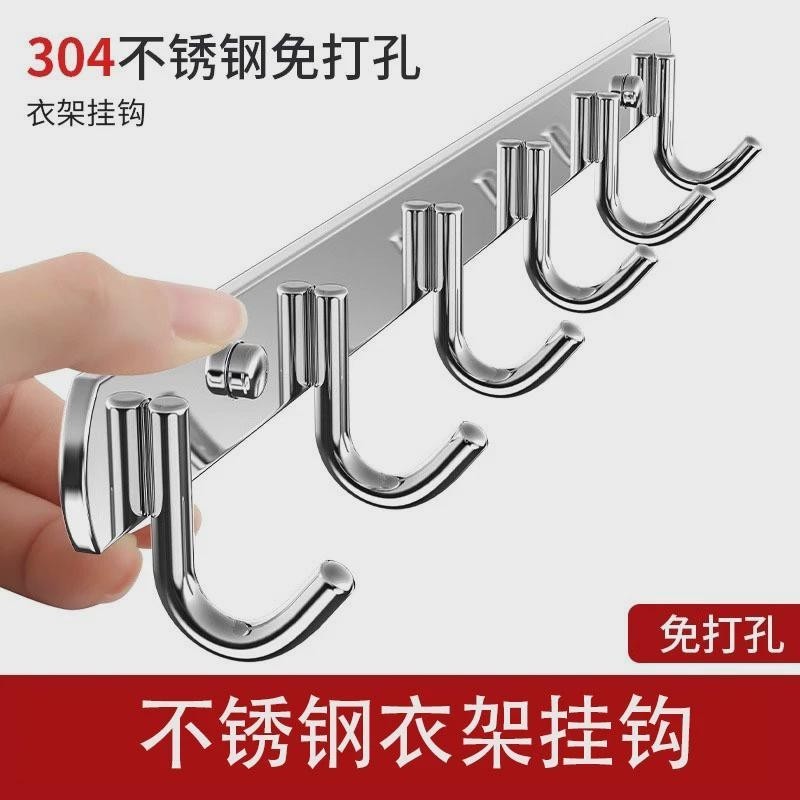 不锈钢挂钩连排厨房墙壁排钩浴室挂衣架可打孔强力承重304一排钩