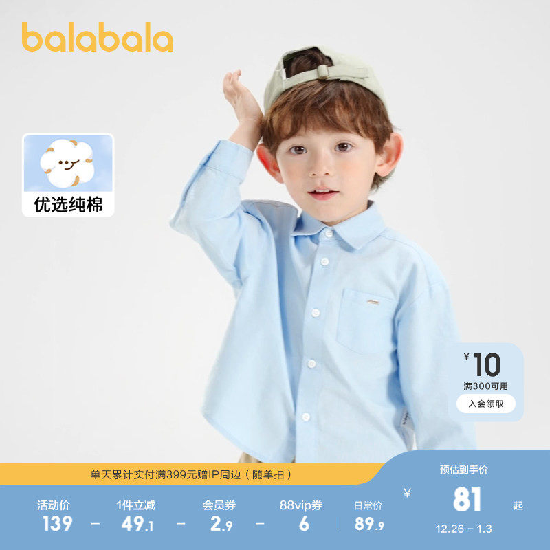 巴拉巴拉童装儿童衬衫男童女童上衣长袖衬衫春秋学院风潮亲子装
